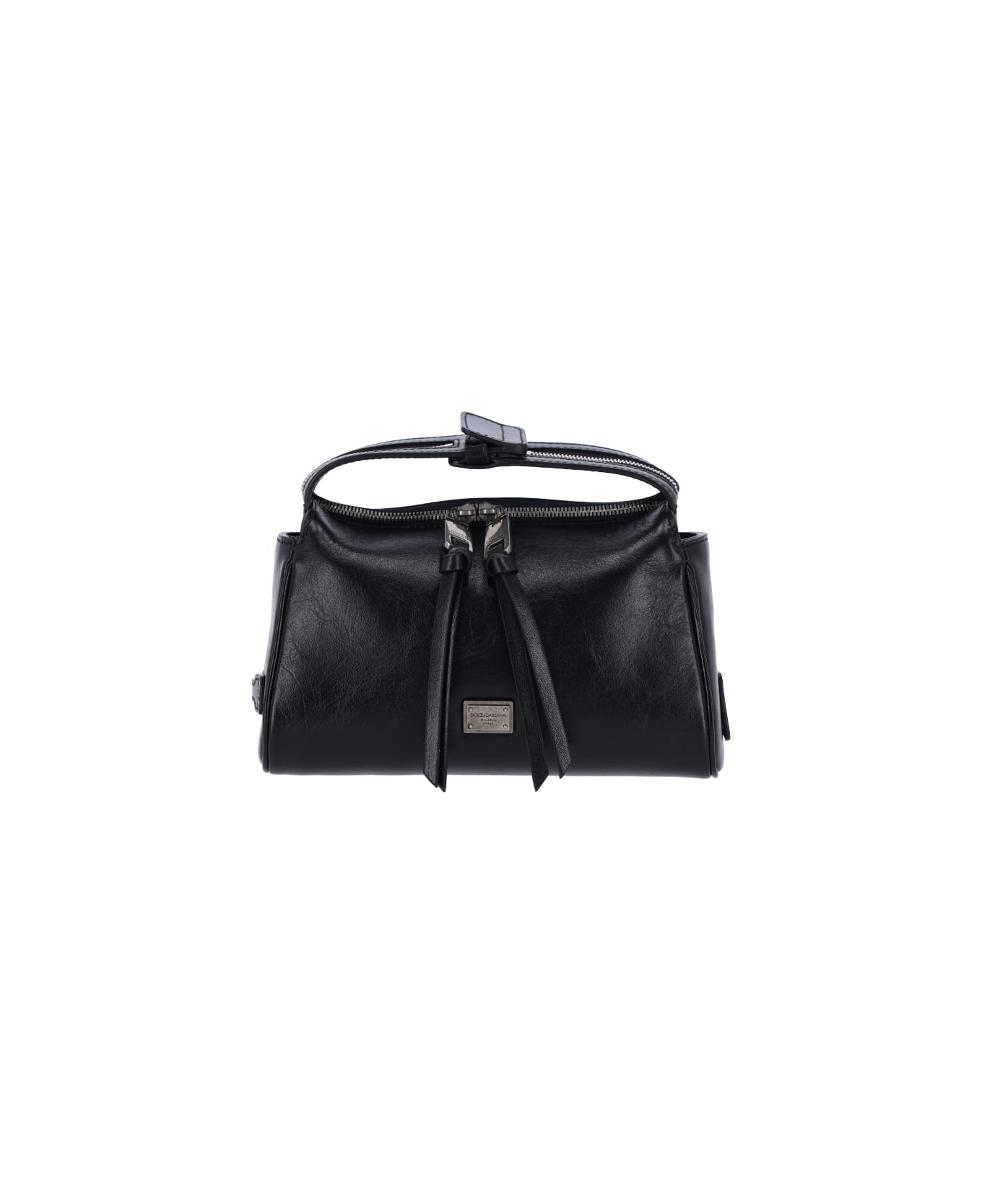 Dolce & Gabbana "vittoria" black calf leather handbag with top handle, adjustable and removable shoulder strap, double zip closure, zipper puller, silver logo embossed on the front, single main inner compartment. Composition: 100% Calf Leather