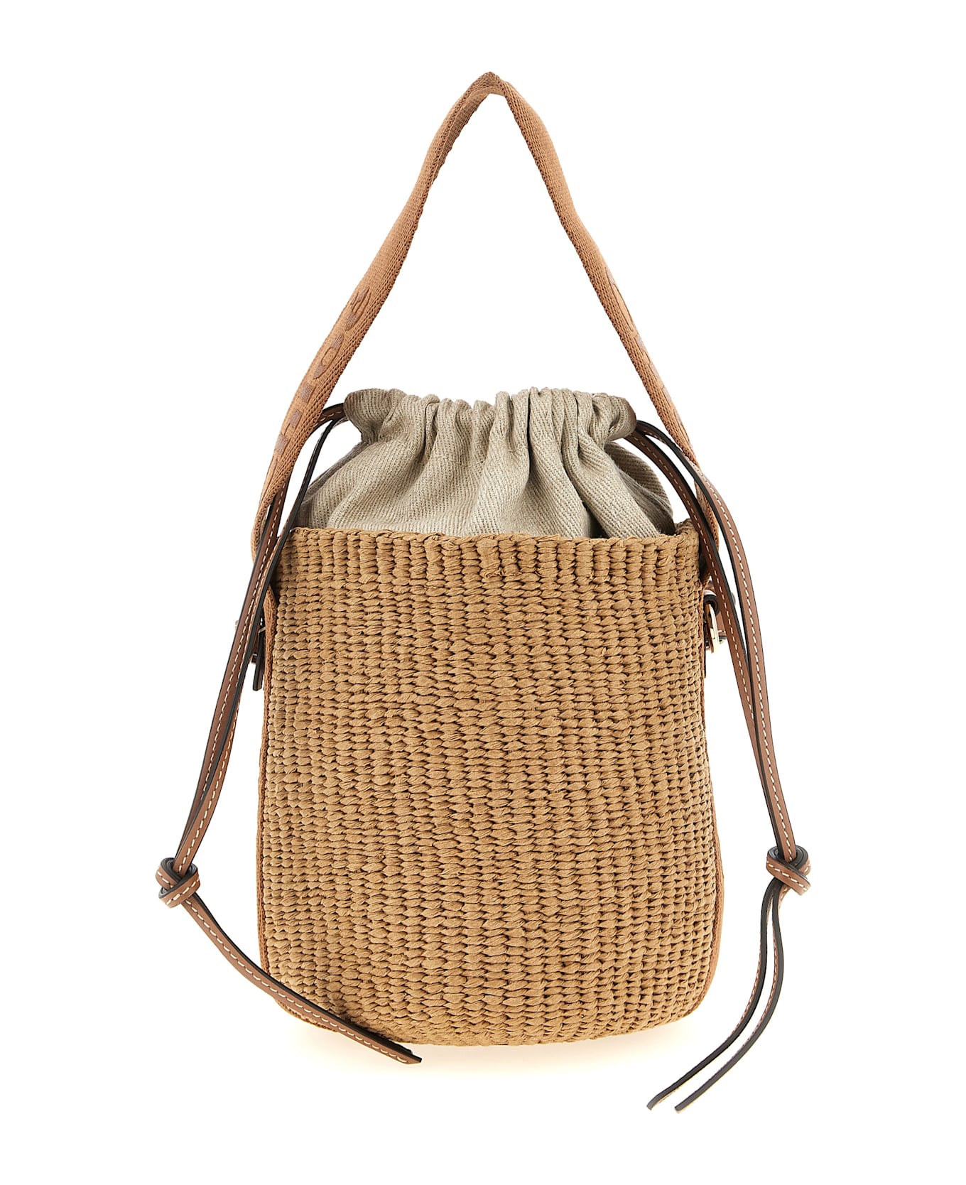 Small 'Woody' bucket bag in woven paper with leather details, embroidered tape with logo, drawstring closure, leather shoulder strap. Handcrafted product, any imperfections are to be considered characteristics of uniqueness. Composition: 100% paper