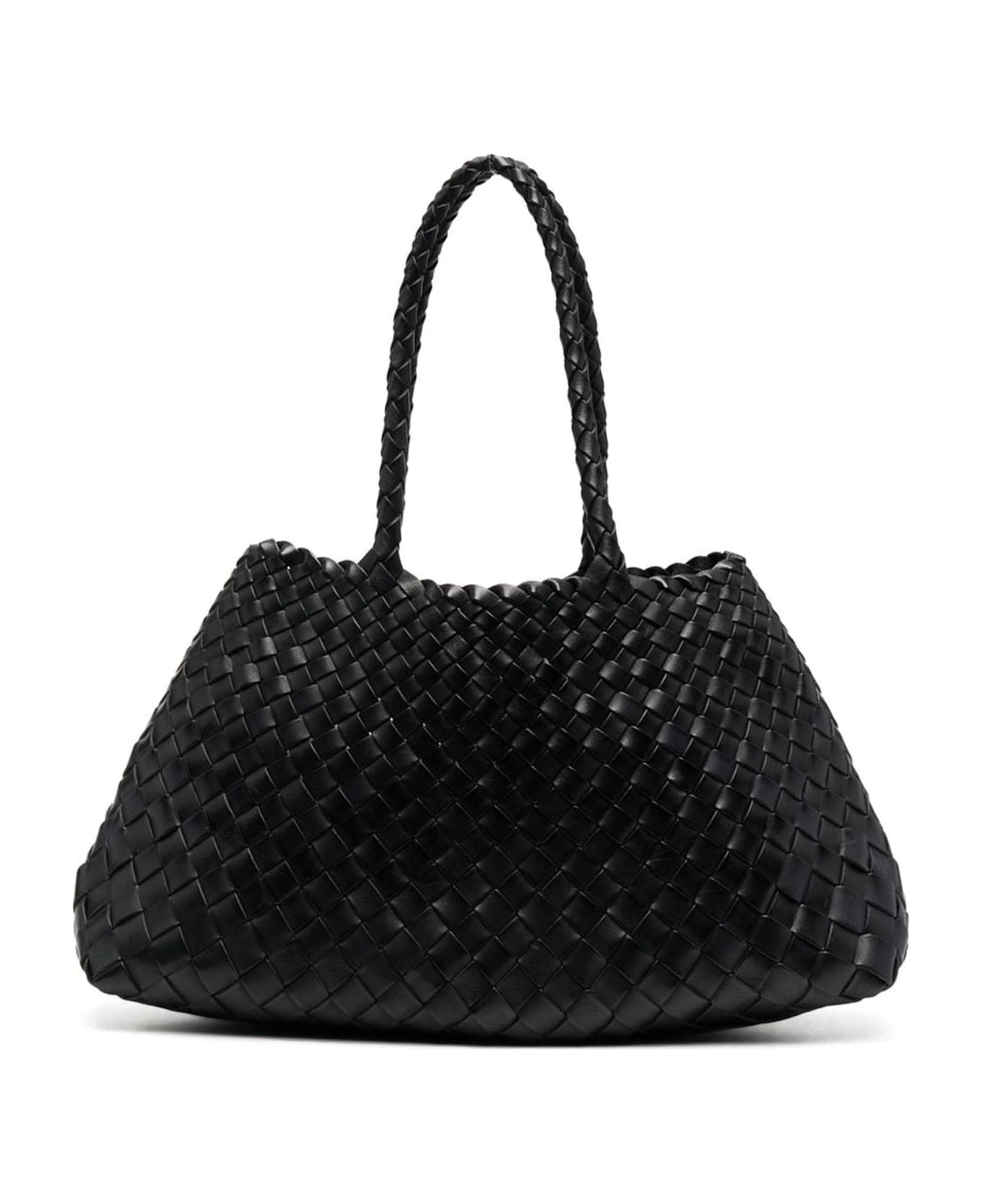 Black woven Santa Croce tote bag, calf leather, woven design, two round handles, trapeze pattern, magnetic closure and single compartment, 44X23X14 CM Composition: Leather, 100%