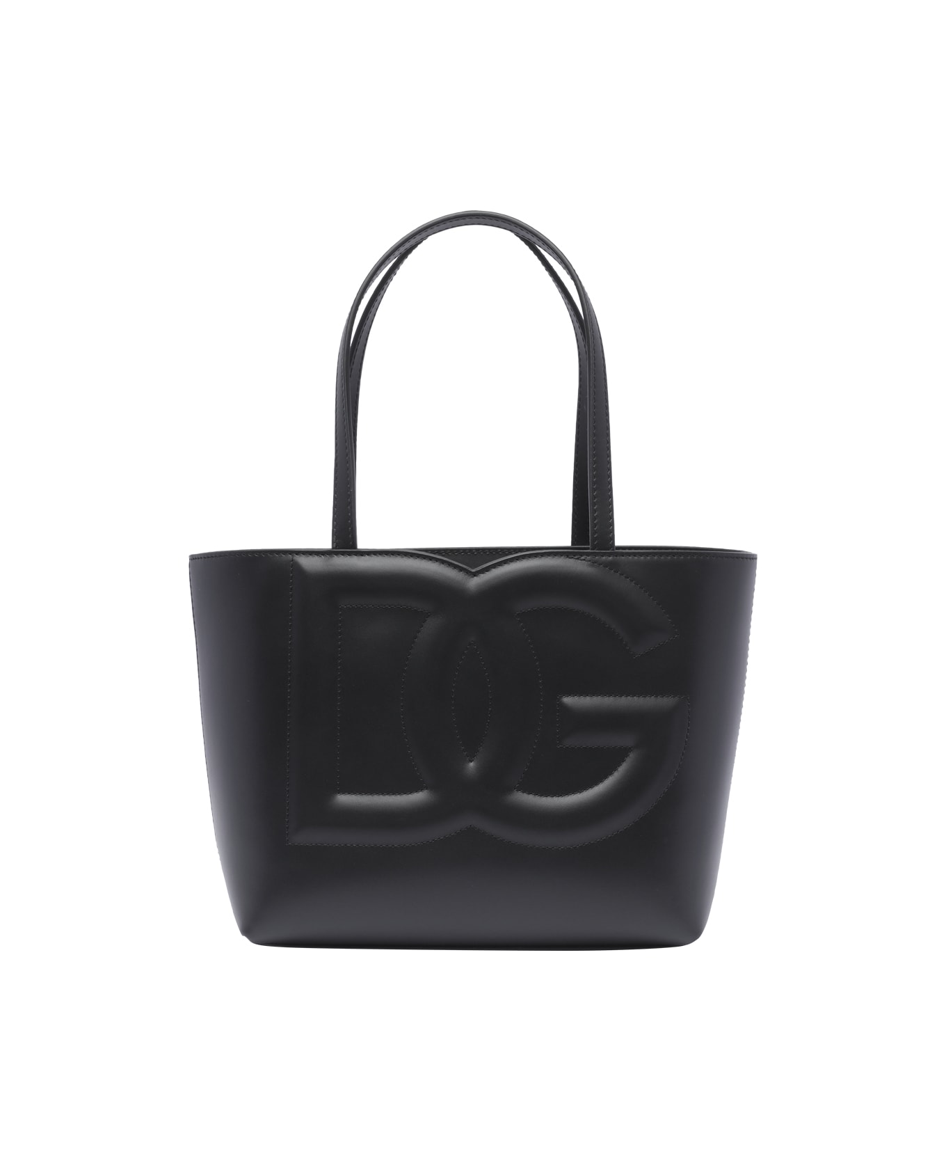 Dolce&Gabbana DG logo shopping black small bag, inner zip pocket, one open pocket, two handles Composition: 100% Calf Leather