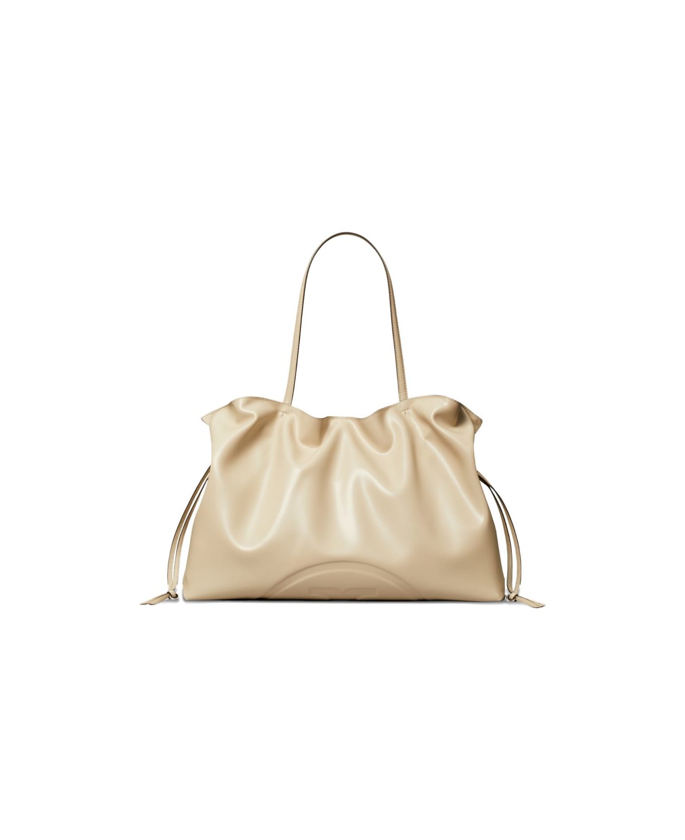light stone drawstring top handle embossed logo tonal stitching slip pocket