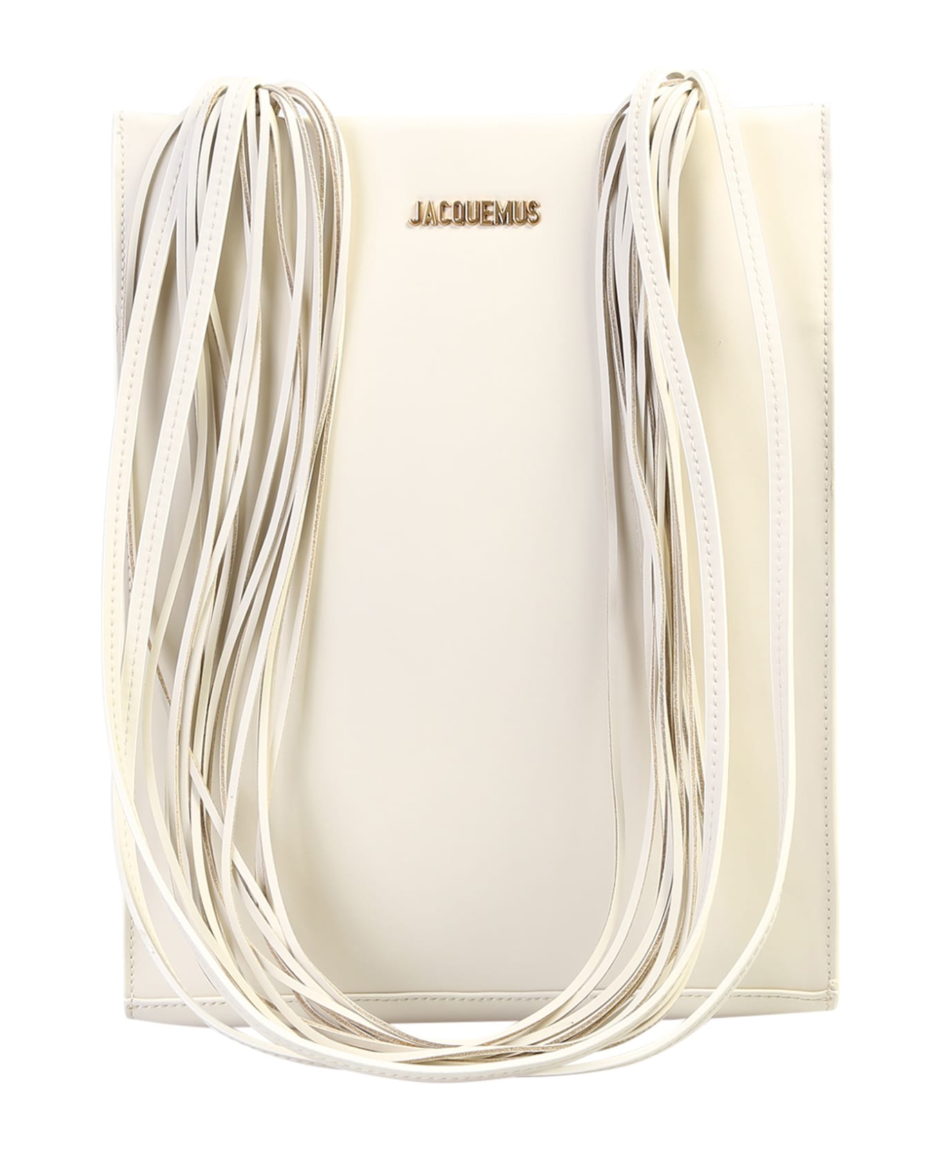 Le A4 bag from Jacquemus: White Le A4 bag with fringed handle, front logo and internal pocket. W: 25 cm X H: 33 cm X D: 7 cm, Strap: 45 cm