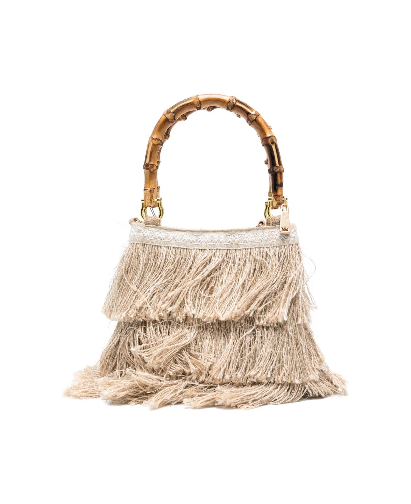 beige fringe detailing bamboo top handles chain strap This piece comes complete with a protective dust bag.