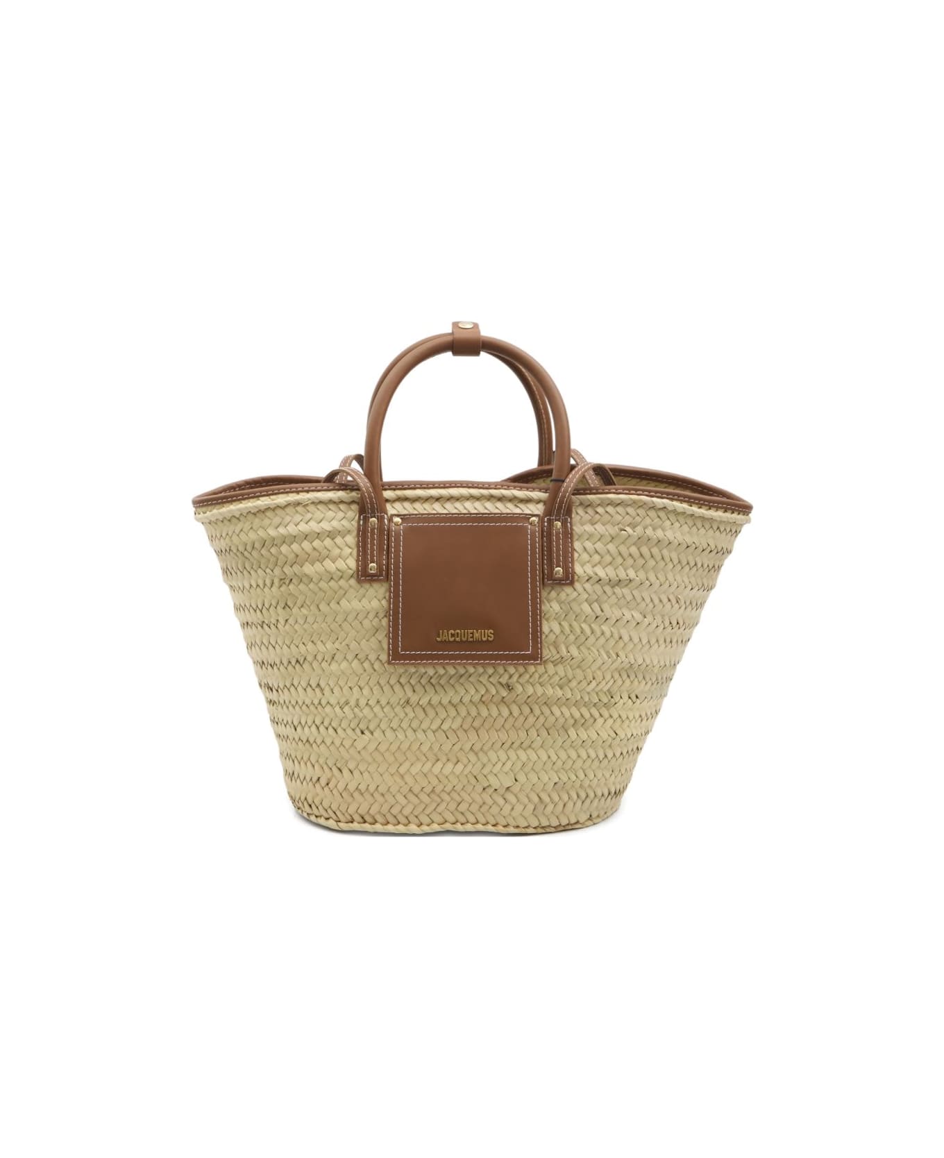 beige woven design leather details two top handles front leather pocket lobster clasp closure Composition: Principal:, 100% Other Fibers