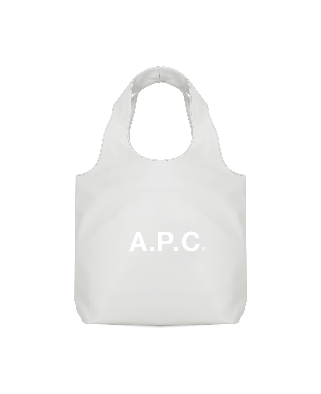 - Grey A. P. C. synth leather shopping bag for woman - Two handles - Front contrasting color logoed print - One internal welt pocket