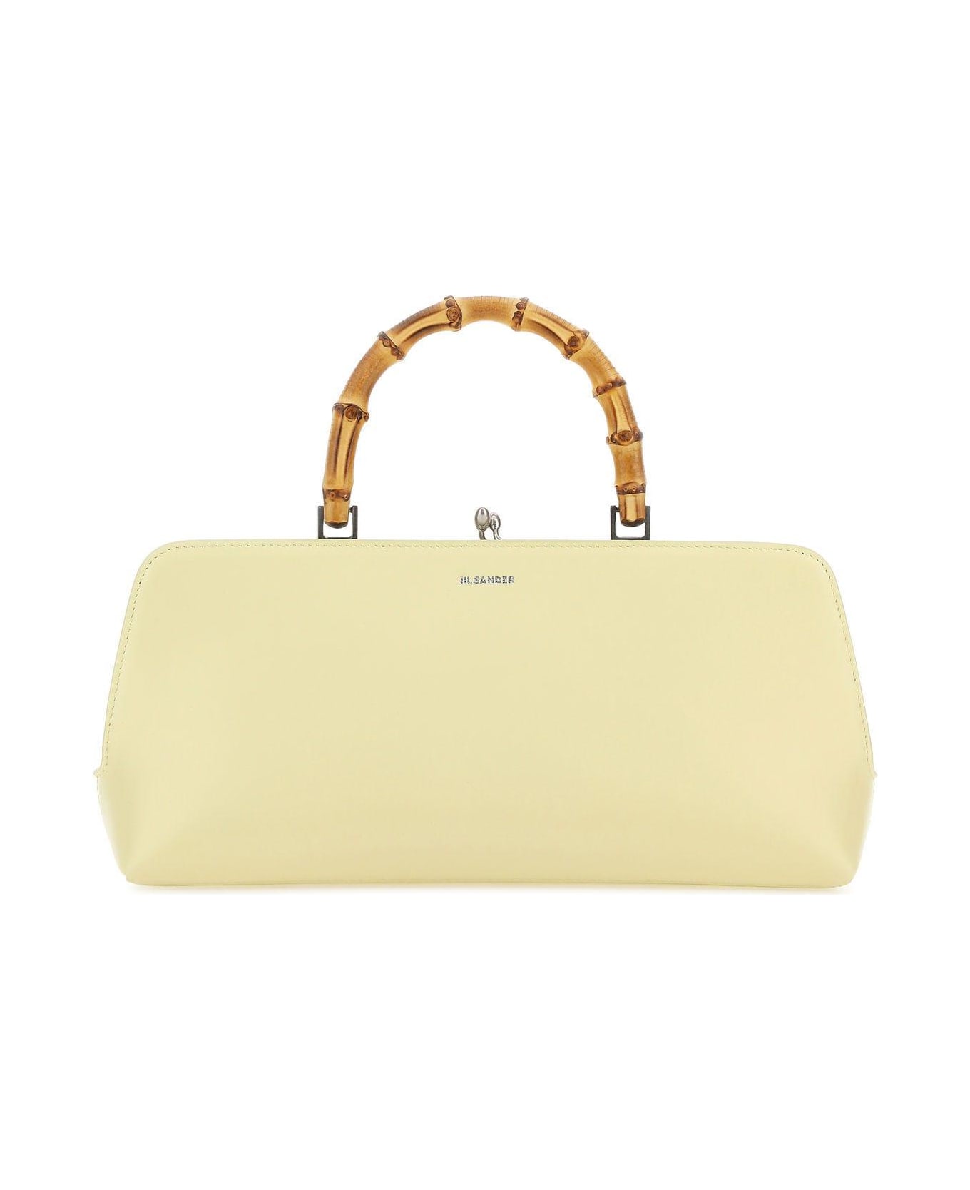 Handbag realized in smooth leather characterized by contrasting printed logo at the front. - A bamboo round handle - Kiss lock closure - Lined interior with a zip pocket Composition: Exterior: 100% Calf Lining: 100% Nappa leather Finishing: Silver metal