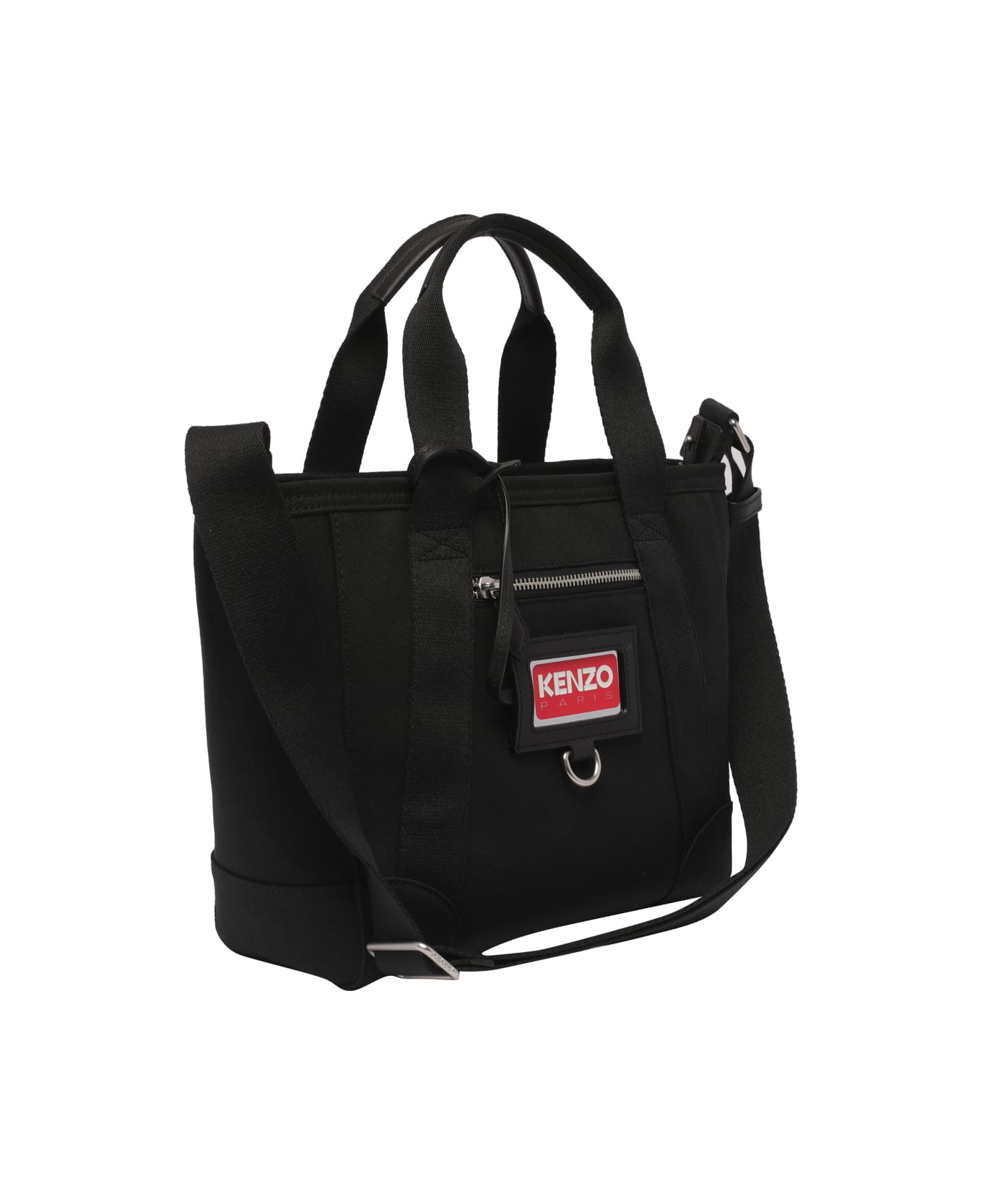 Kenzo black small Tote bag, zip closure, one inner open pocket, one external zip pocket, double handle, adjustable and detachable shoulder strap Composition: 100% Cotton