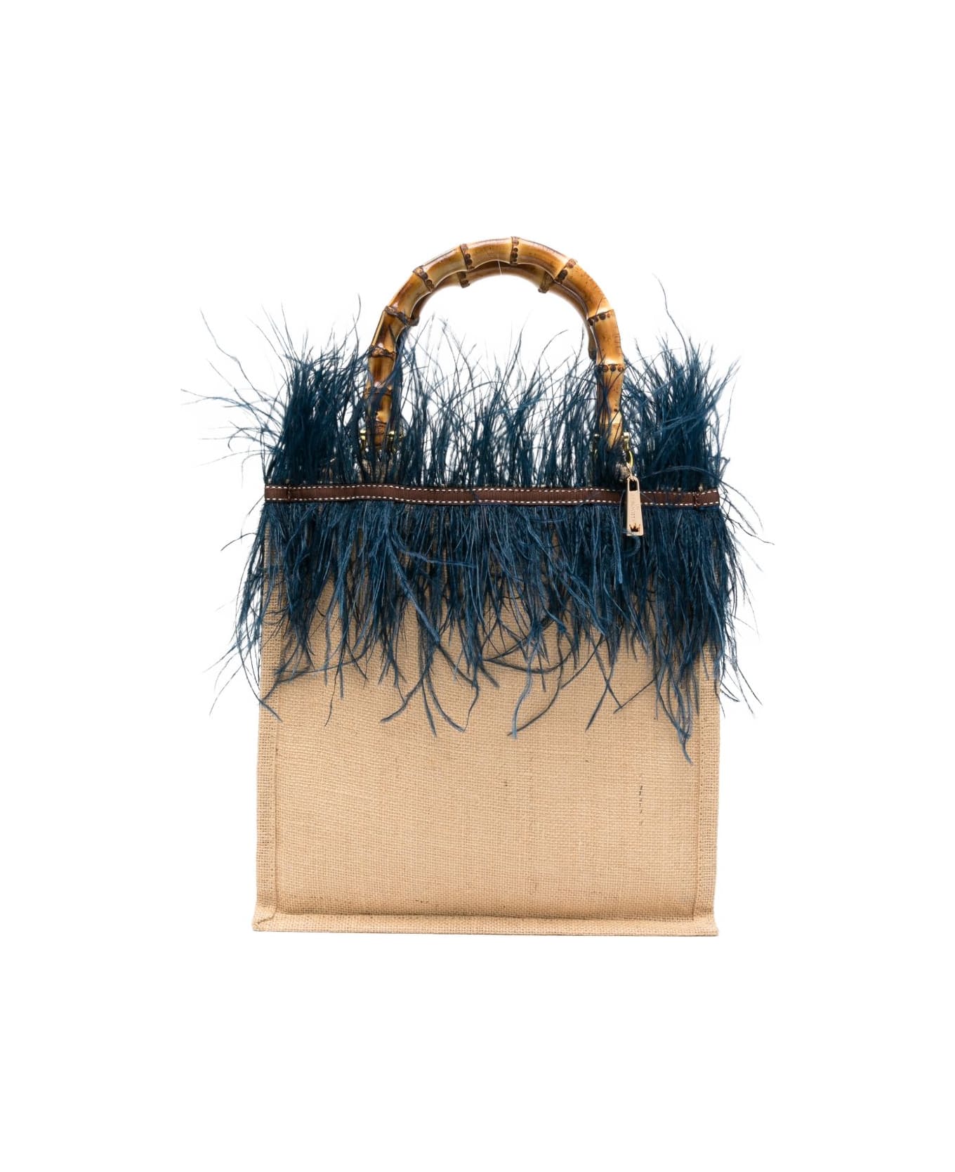 beige/blue bamboo handle chain detail top handle internal slip pocket This piece comes complete with a protective dust bag.