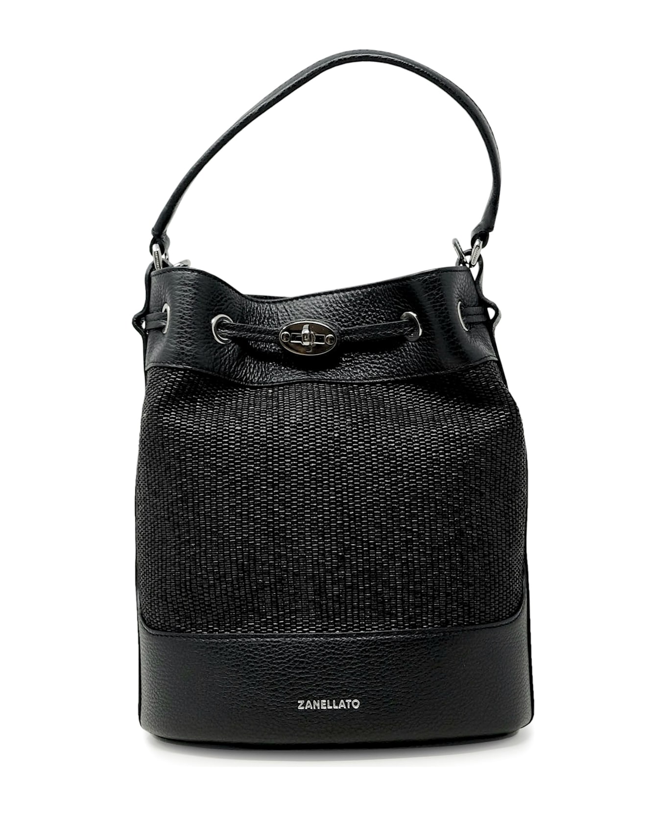 ZANELLATO 068980-2030000-Z0001 BLACK NERINA MONDA' VIMINI S LEATHER HANDBAG, product code 068980-2030000-Z0001, MONDA' VIMINI, colour BLACK NERINA, material 100% LEATHER, details 23X28X18 cm, season SS25