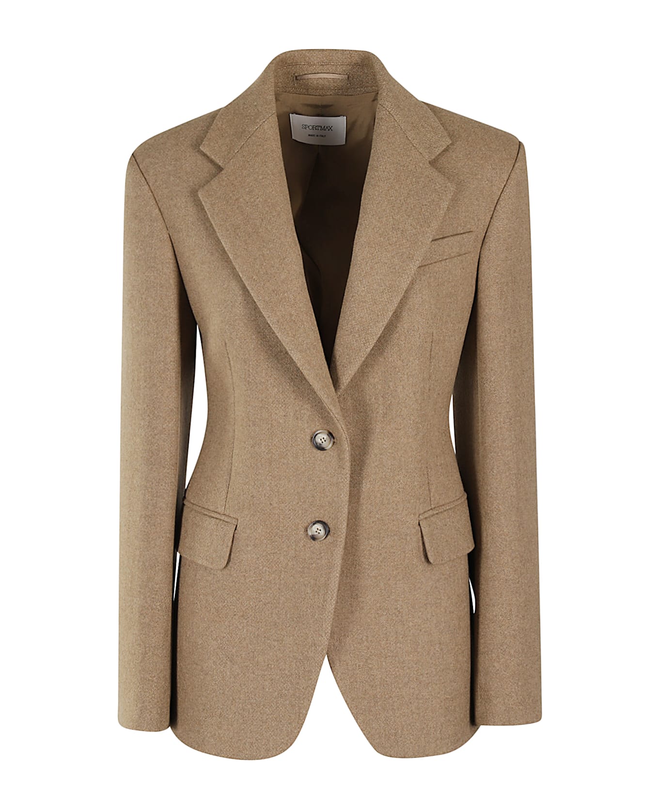 Gel blazer - Sportmax - Biscuit color - Wool-blend tweed fabric - Lapel neckline - Long sleeve with padded shoulder pad - Flush chest pocket - Flap side pockets - Contoured waistband - Single-breasted two-button closure - Regular fit
