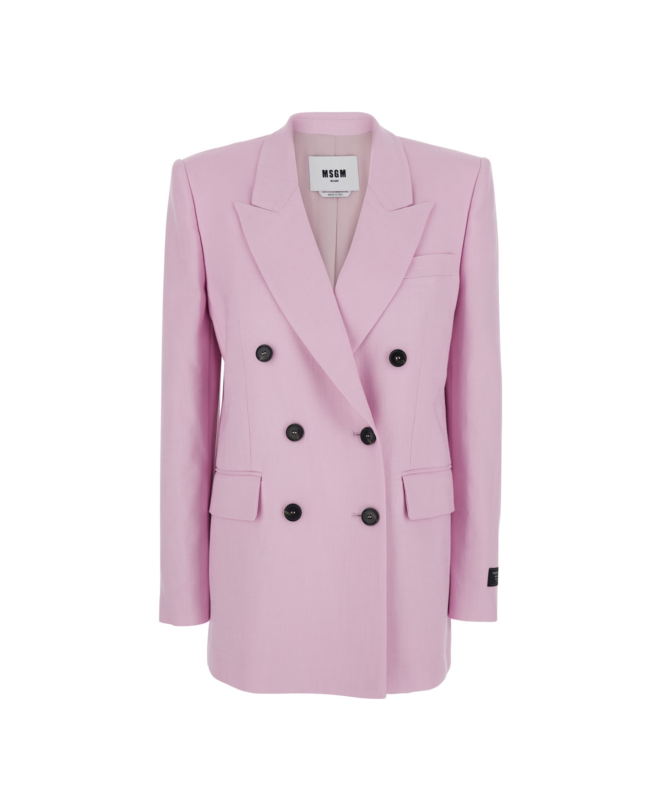 Pink jacket with notched collar and front button closure. It features long sleeves with cuffs and a straight hem. There are no decorative details on the back. Made of Viscose. Regular fit.