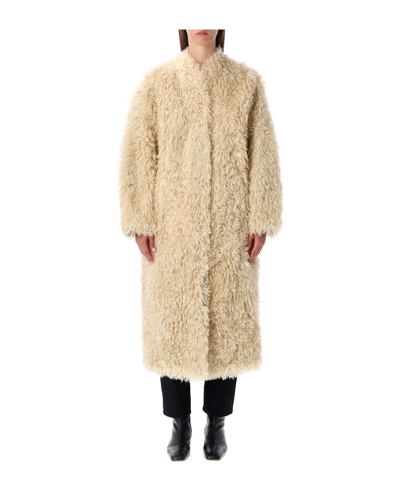 The Carolina Coat By Stand Studio Redefines Outerwear With A Refined, Contemporary Touch. Crafted From Curly Faux Fur, It Features A Straight, Longline Silhouette That Offers Both Warmth And Elegance. Fully Lined For Comfort, It Is Designed With Concealed Snap Buttons Closures, Discreet Slit Pockets And A Back Vent That Enhances Movement. A Versatile And Enveloping Statement Piece For The Winter Season. Long Curly Faux-fur Coat