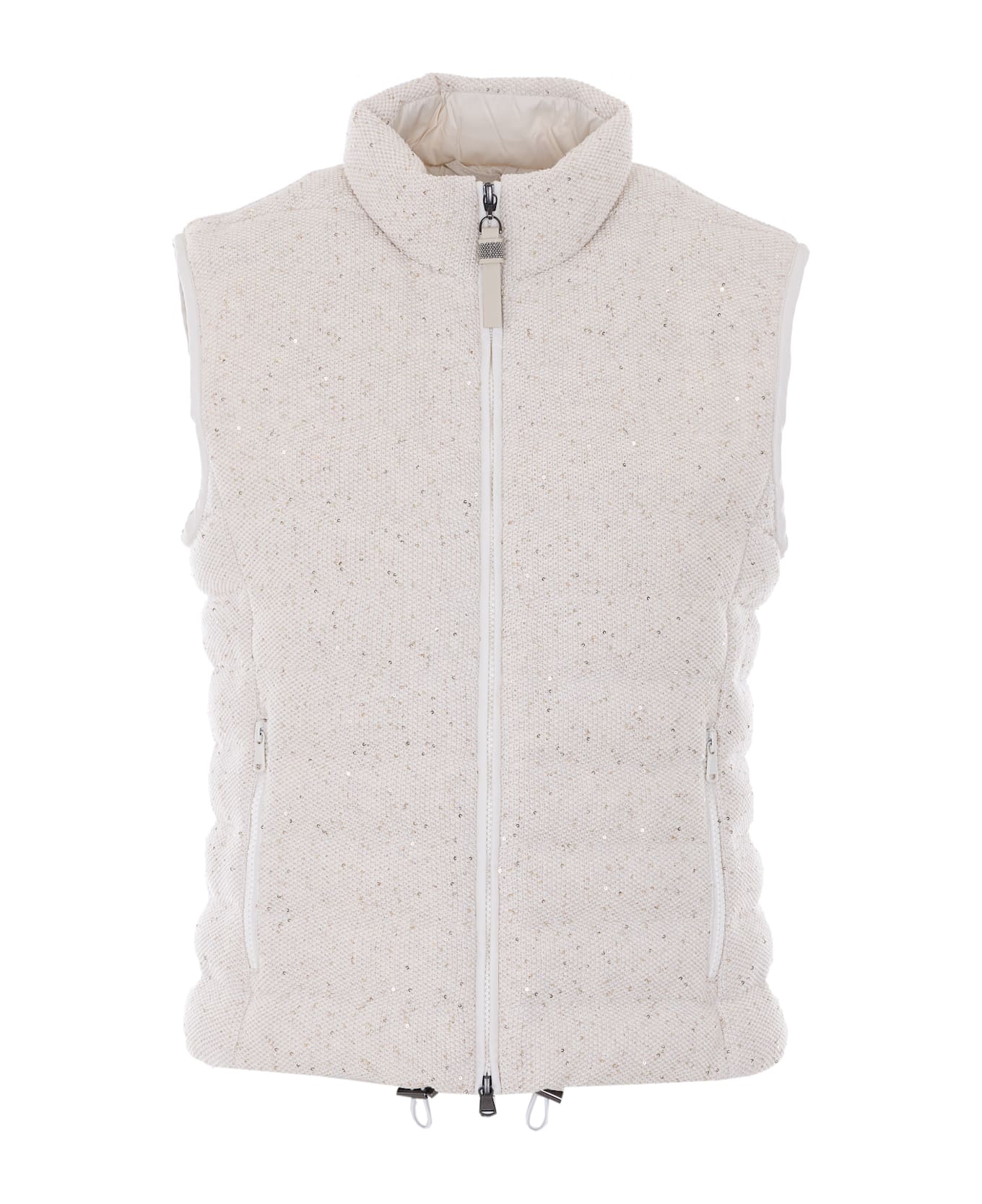 Brunello Cucinelli beige padded vest, zip closure on the front, all over sequins details, zip pockets Composition: 96% Cotton, 4% Polyester, 100% Polyester