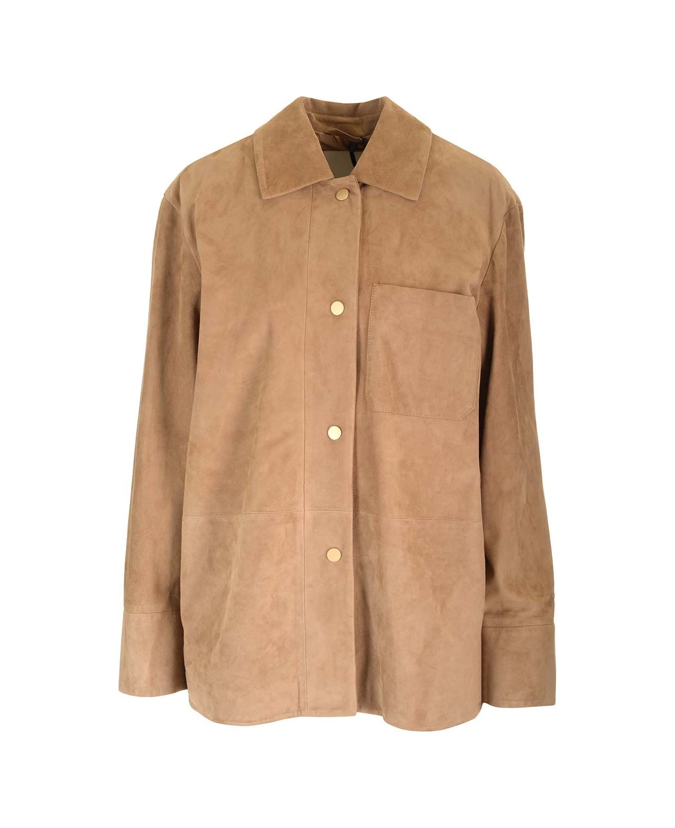 "Fresia" suede overshirt from 'S Max Mara, with shirt collar, long sleeves with cuffs, front fastening with press studs, patch pocket on the chest and inset pockets on the sides. Composition: leather of Lamb leather Ovis aries aries India