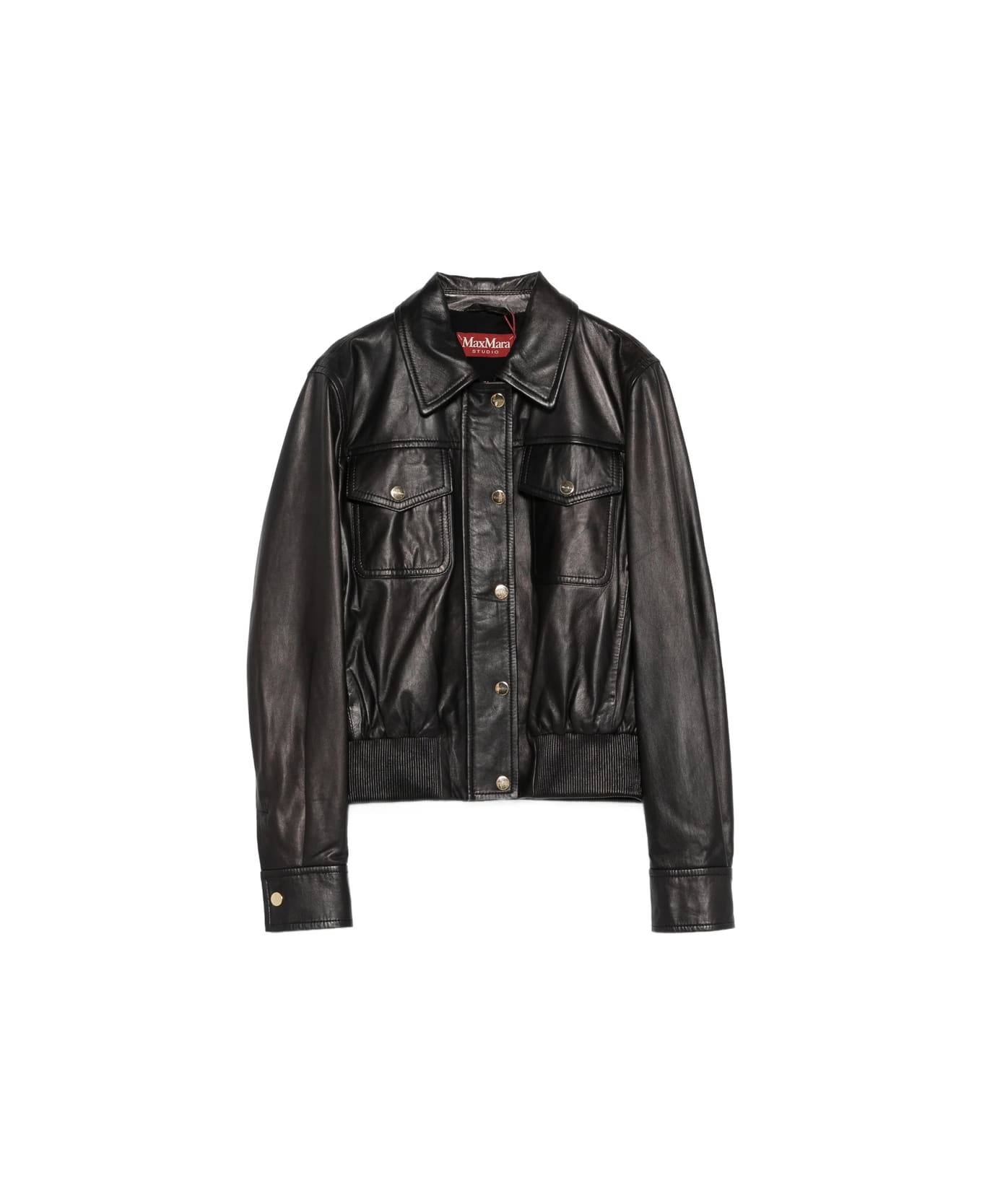 black chest pockets button fastening ribbed knit hem buttoned cuffs point collar