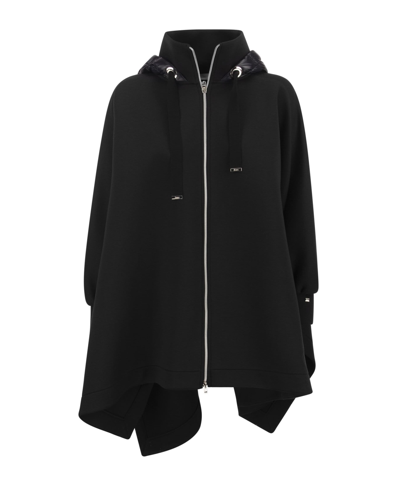 A poncho-style jacket made of double interlock fabric of polyester and cotton, very comfortable and pleasant to the touch. The trendy oversize shape is designed to draw full attention to the outfit, accompanying movements and enhancing femininity. - Oversize fit - Fixed hood in Ultralight Nylon, adjustable with tone-on-tone grosgrain drawstring - Two-way zip fastening - Side slits DESIGNER ID: JC00009DR 56007 9300