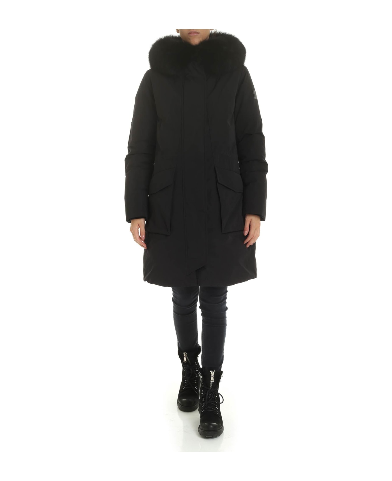Military Parka Fox from Woolrich: Black jacket with hood abd black fox fure, 2 pockets. -Composition: 100% Polyester / Padding: Goose Down -Fit the true size -Made in Vietnam