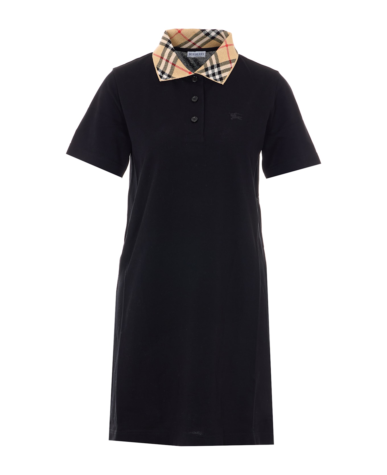 Burberry black check dress, regular collar with check motif, short sleeves, embroidered logo on the front, buttons closure Composition: 100% Cotton