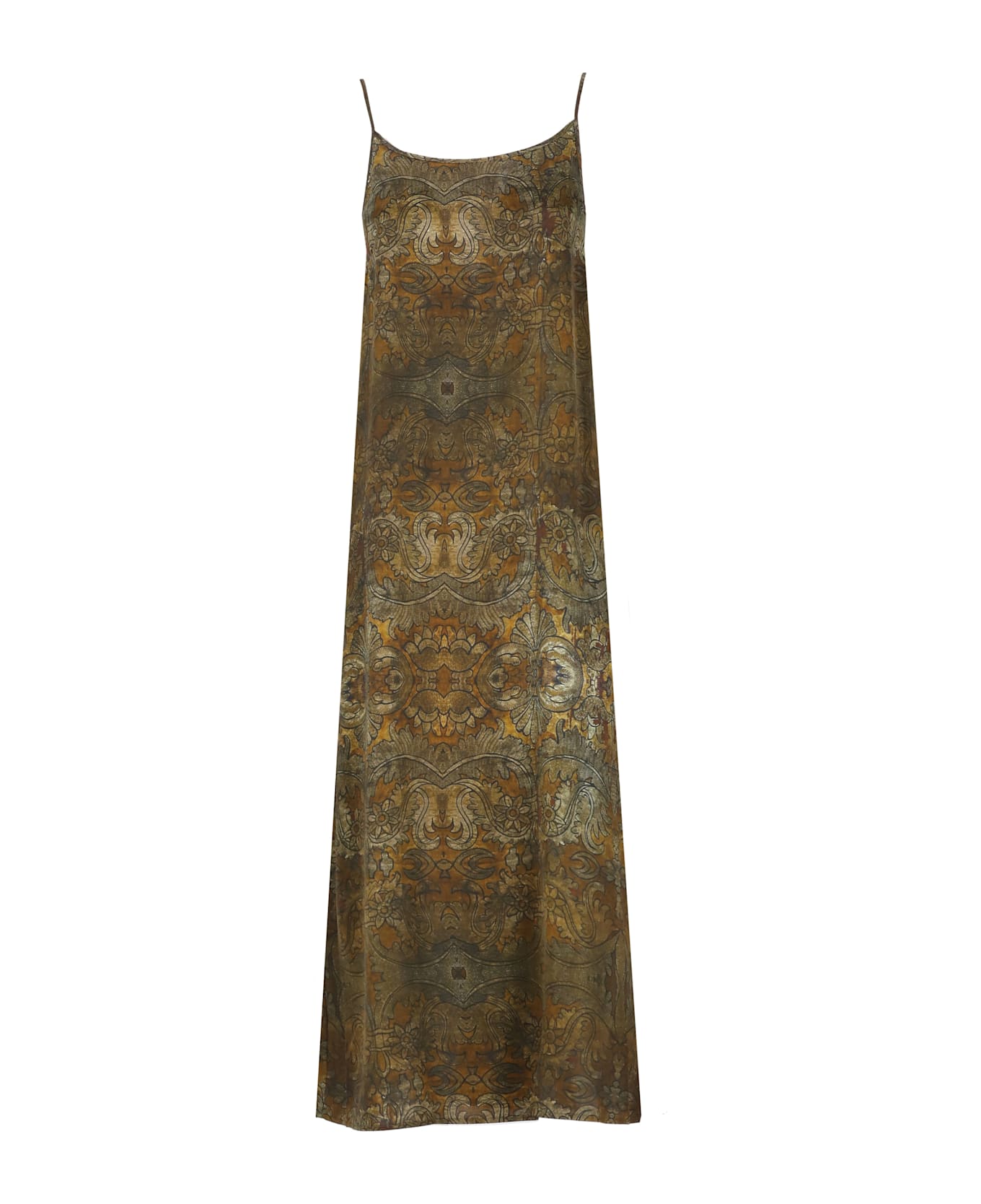 - Brown Uma Wang silk dress for woman - Two shoulder straps - Sleeveless - All-over floral pattern
