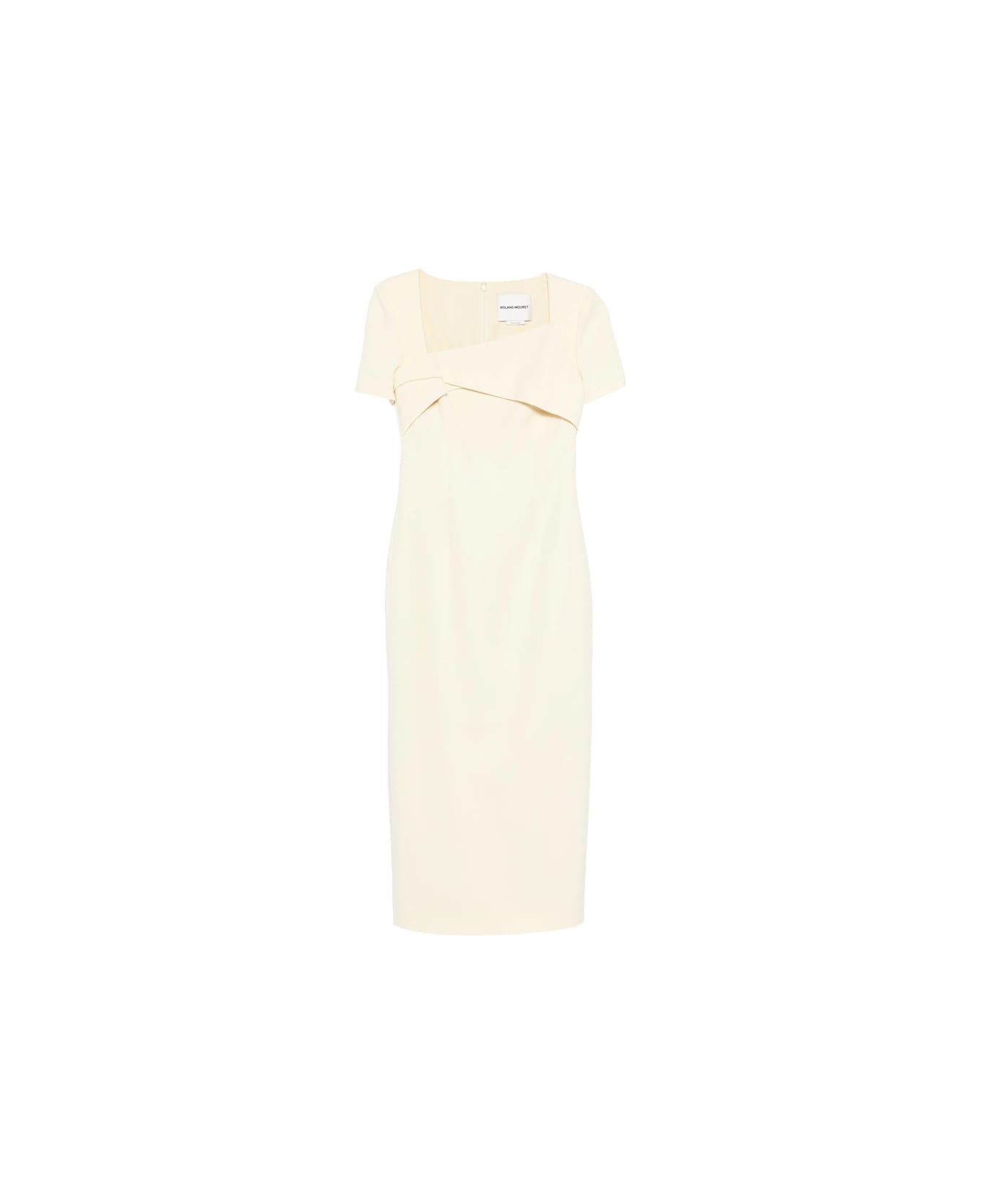 yellow square neck short sleeves twisted detail concealed zip fastening knee length