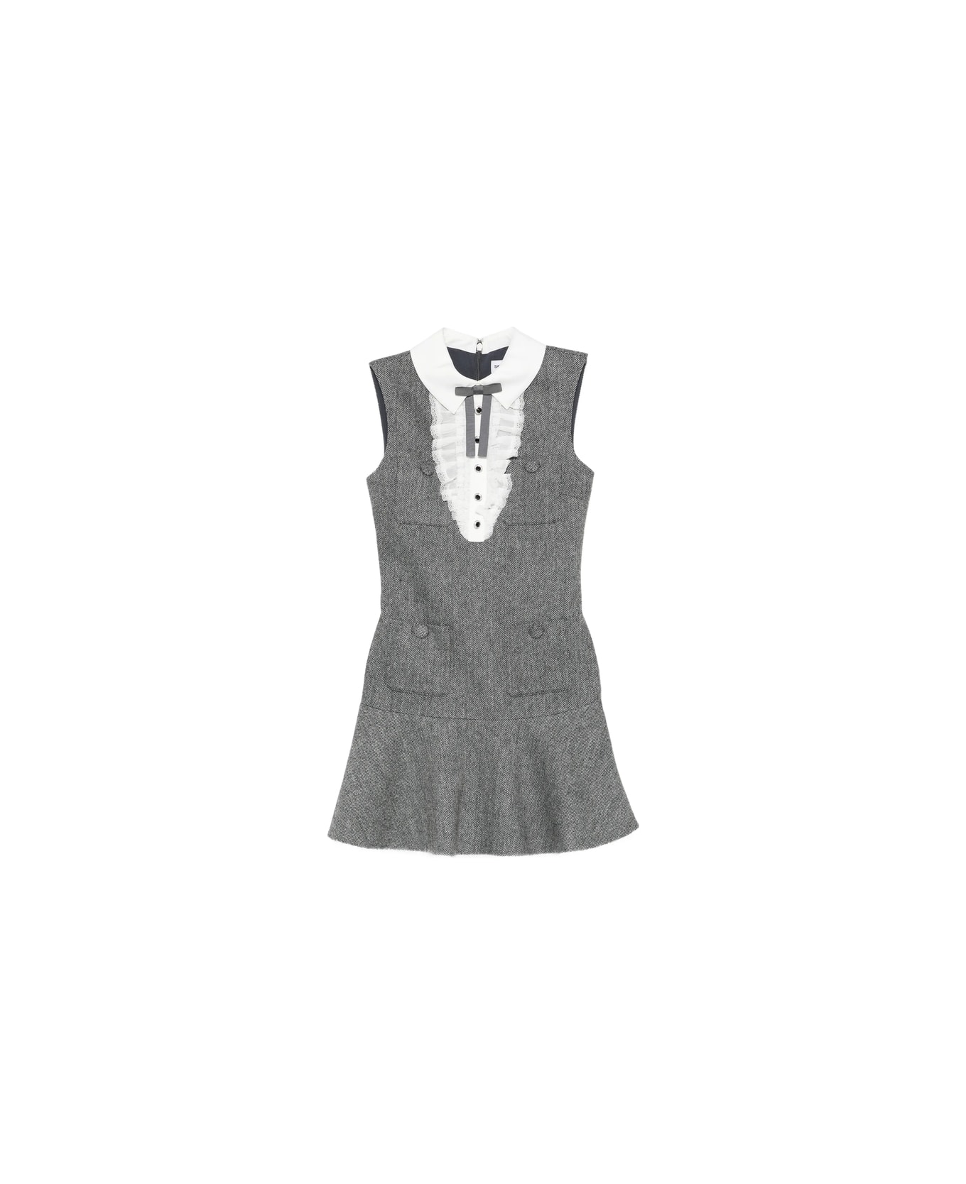 grey ruffled trim collar button embellishment A-line skirt sleeveless