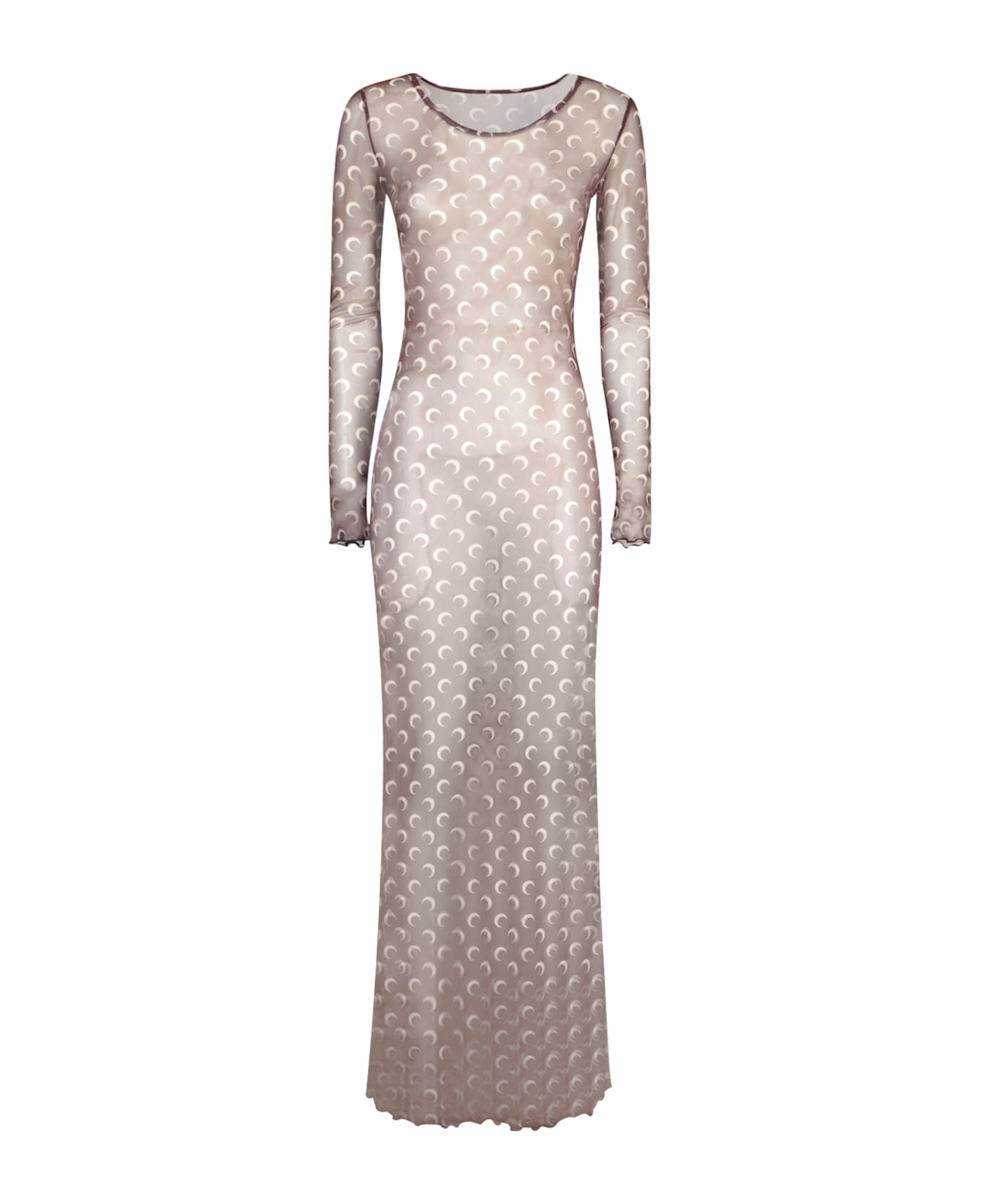 This elegant Marine Serre dress, crafted in delicate mesh fabric, stands out with its all-over monogram print offering a distinctive and contemporary look. The form-fitting design enhances the silhouette, making it ideal for special occasions. Composition: 94% Polyester, 6% Elastane