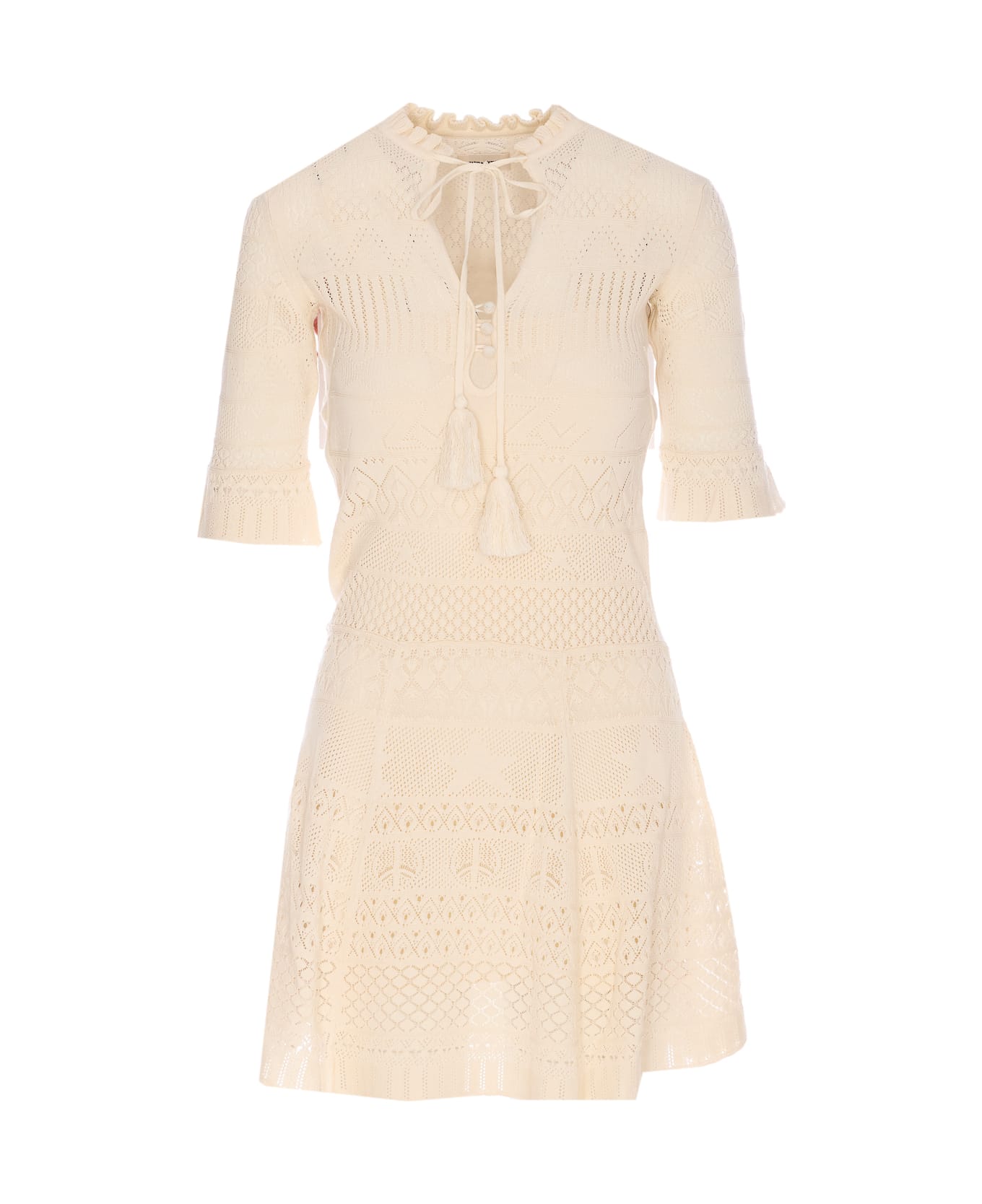 Zadig&Voltaire ecru Memphis Co Pointelle dress, petticoat, laces with tassel closure on collar, short sleeves, cì mini model Composition: 100% Cotton