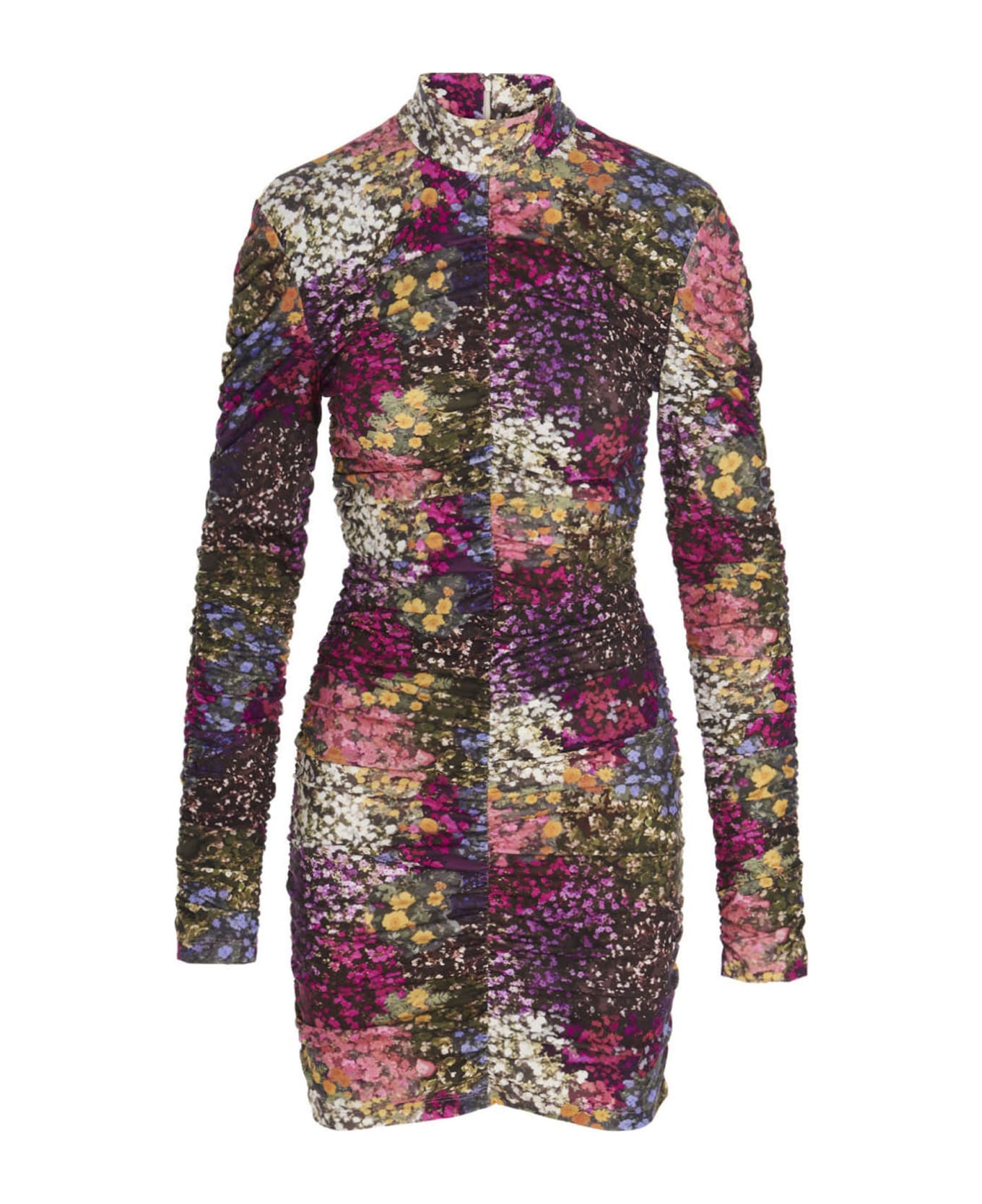 'Tatiana' dress with all-over floral print, shirred details, long sleeves, mock neck, back zip and padded shoulders. Composition: 55% polyamide 45% elastane