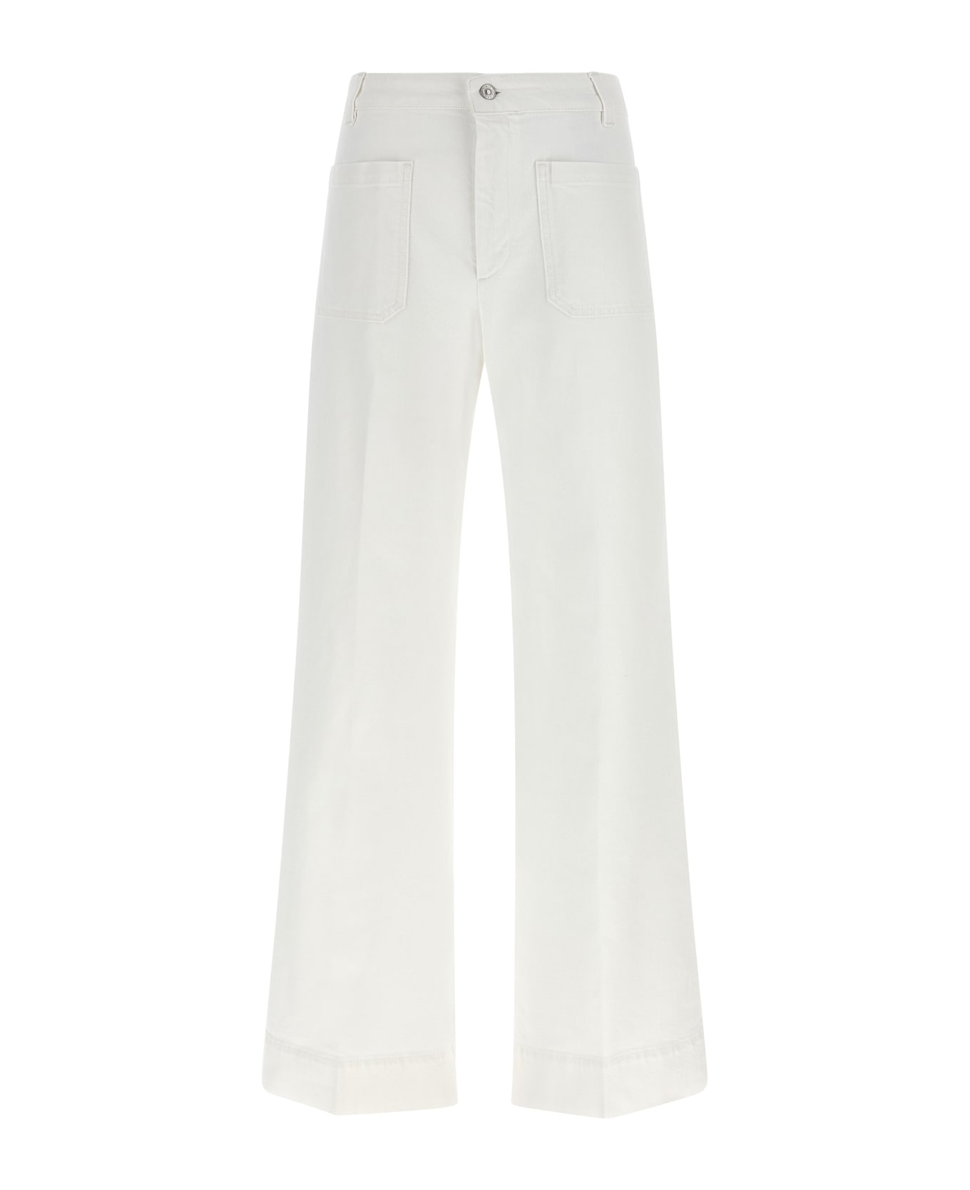 'Alina' jeans in garment-dyed cotton denim with tone-on-tone logo embroidery and front zip and button closure, slightly flared wide leg, high waist, stretched pleat, pockets, back leather logo tag.
