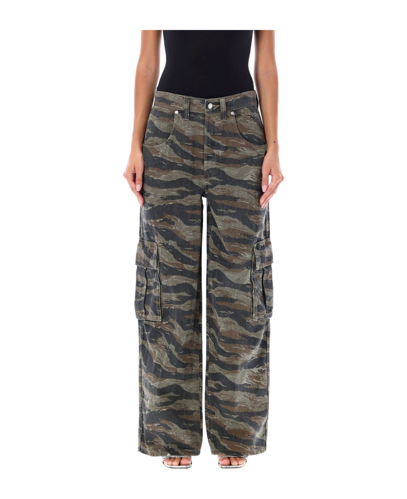 Camo Bagged Out Pocket Jeans By Alexander Wang. Featuring: Low-rise Front Button Closure Belt Loops Slant Side Pockets Cargo Pockets At Sides Rear Flap Pockets Embossed Logo At Back Camouflage Pattern Denim Style Wide Leg Model Is 1,72 M Tall And She Is Wearing Size 26