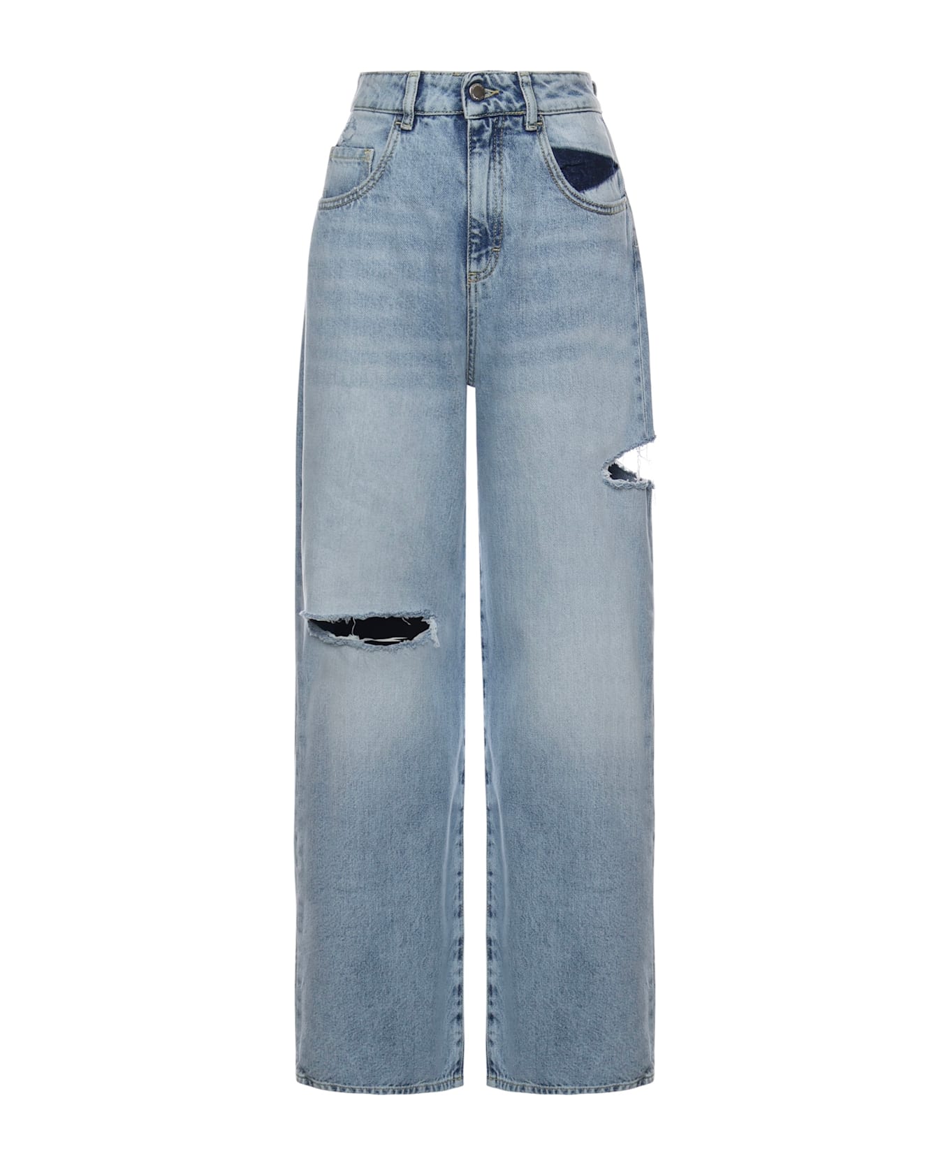 - Made of cotton denim - Mid-rise with belt loops - Wide leg - Five pockets - Cut-out details - Size shown is 23 - Color: Sky Blue
