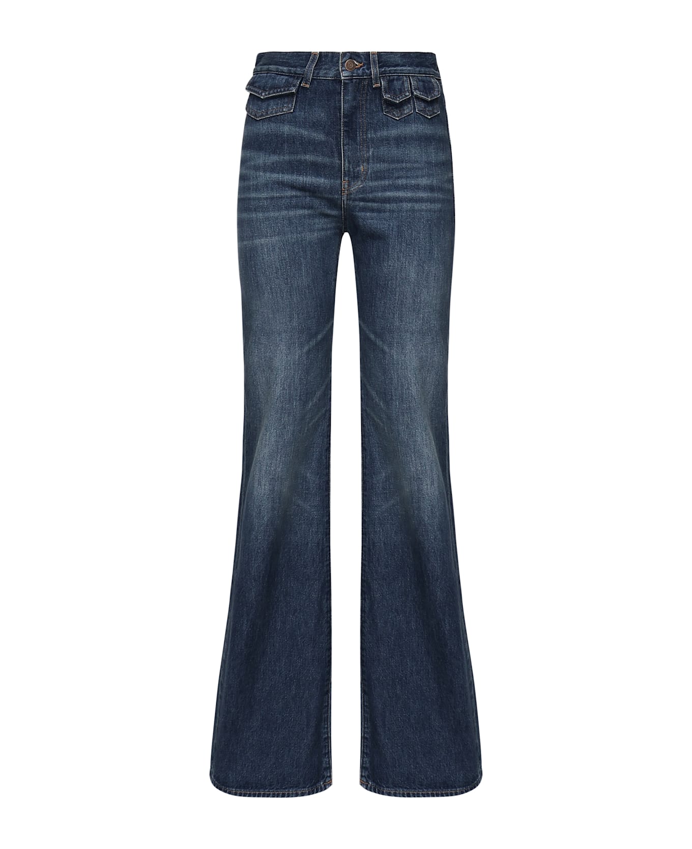 -High waist -Front zip and button closure -3 mini pockets with flap at the waist -Back pockets -Belt loops -Leather logo on the back -Made in Italy -Size shown in the photo is 26 -Color: Navy