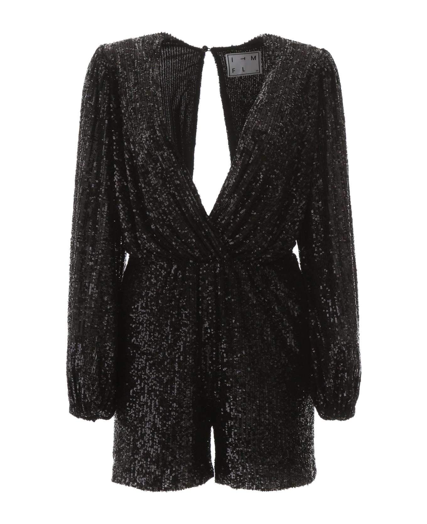 In the Mood for Love sequin-covered jumpsuit with elastic waistband and maxi cut-out on the back. Deep V neck, draped front, side pockets, elastic cuffs. Jersey lining. Model height is 177 cm and she is wearing a size XS.