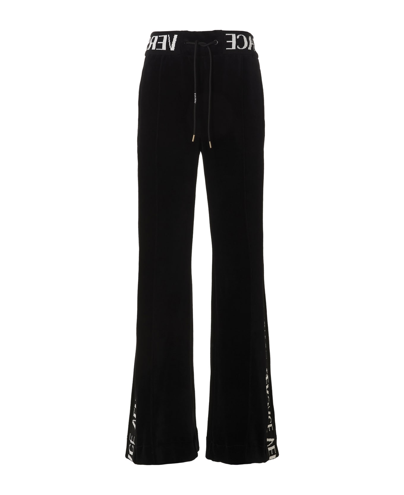 Velvet joggers with side bands, waist with jacquard logo, elastic, drawstring at the waist, nd pockets. Composition: 90% cotton 10% polyamide