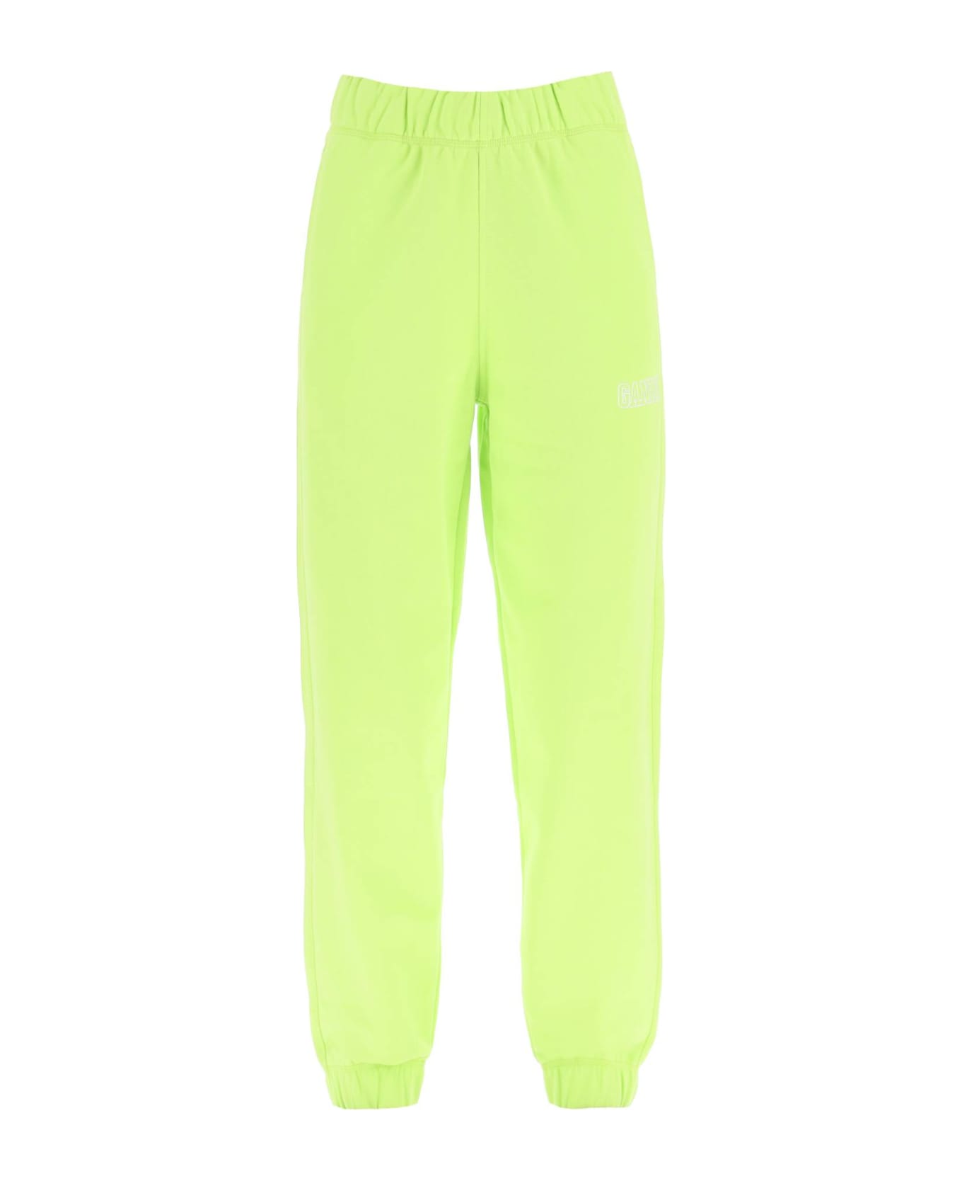 Ganni sweatpants in brushed-back organic cotton blend jersey, with front logo embroidery. Elasticated waistband with internal drawstring, side welt pockets and elasticated cuffs. Loose fit. The model is 177 cm tall and wears a size XS.