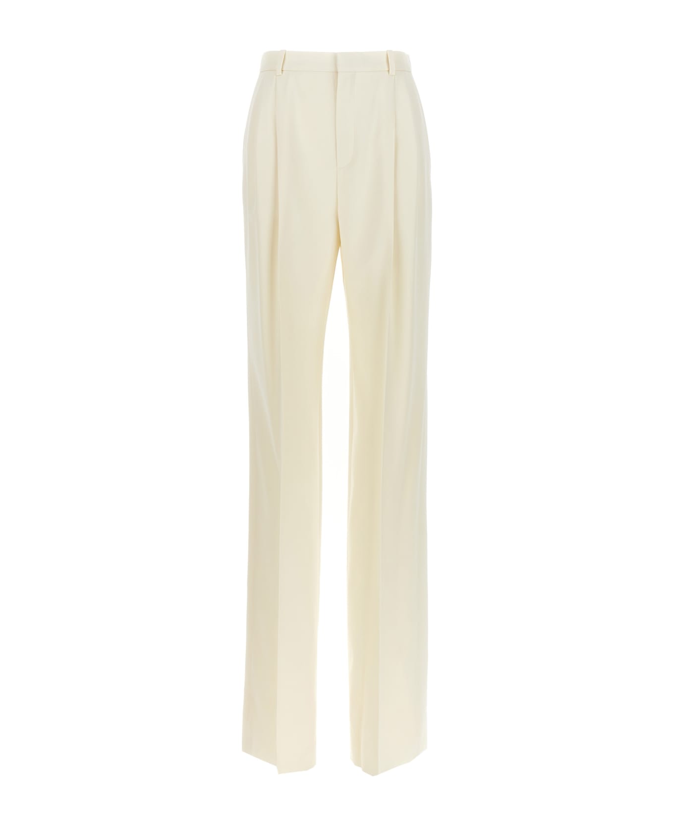 Wool gabardine trousers, hook and button zip closure, double pence and central crease, pockets. Composition: 100% virgin wool Composition: 100% Wool
