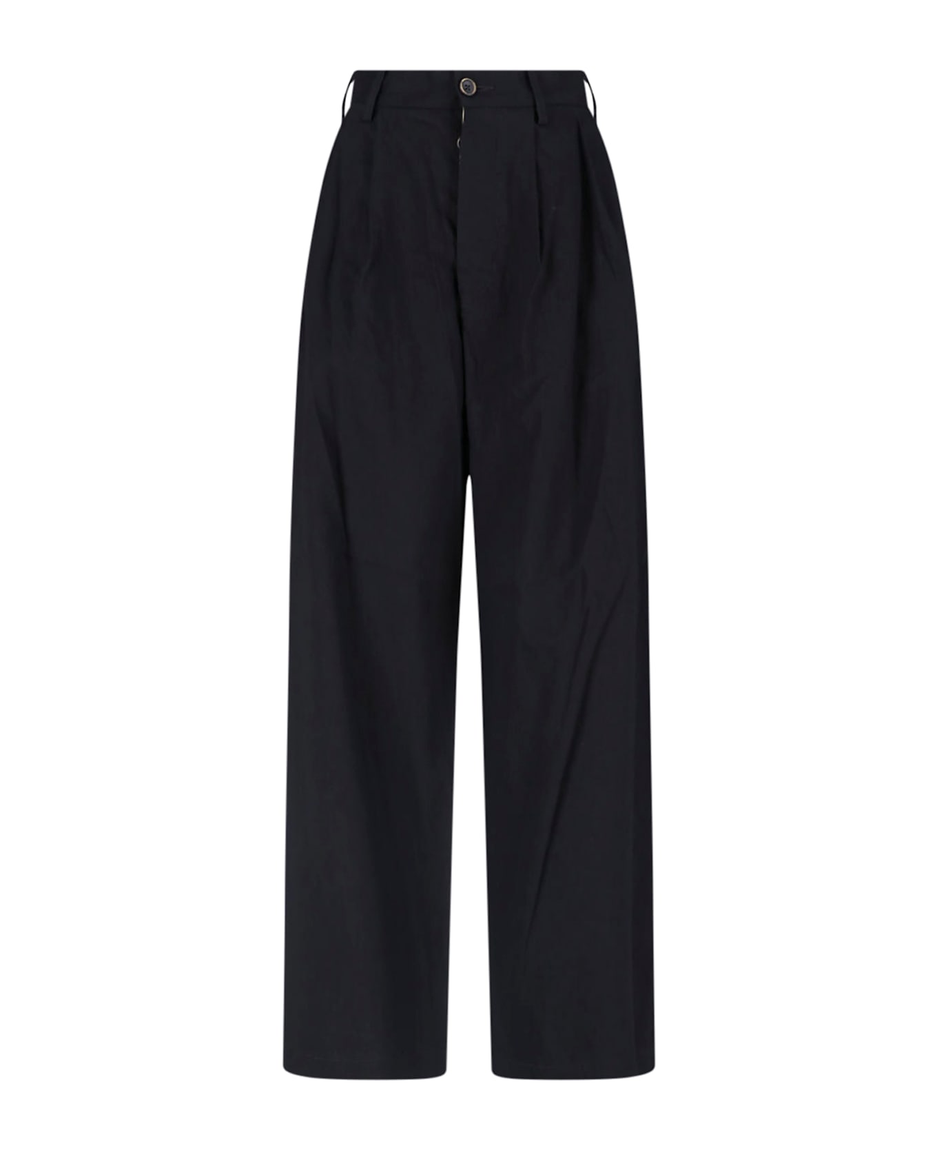 - Tailored pants Uma Wang in black linen blend - high waist - button closure - belt loops - two side pockets - two back welt pockets - wide leg