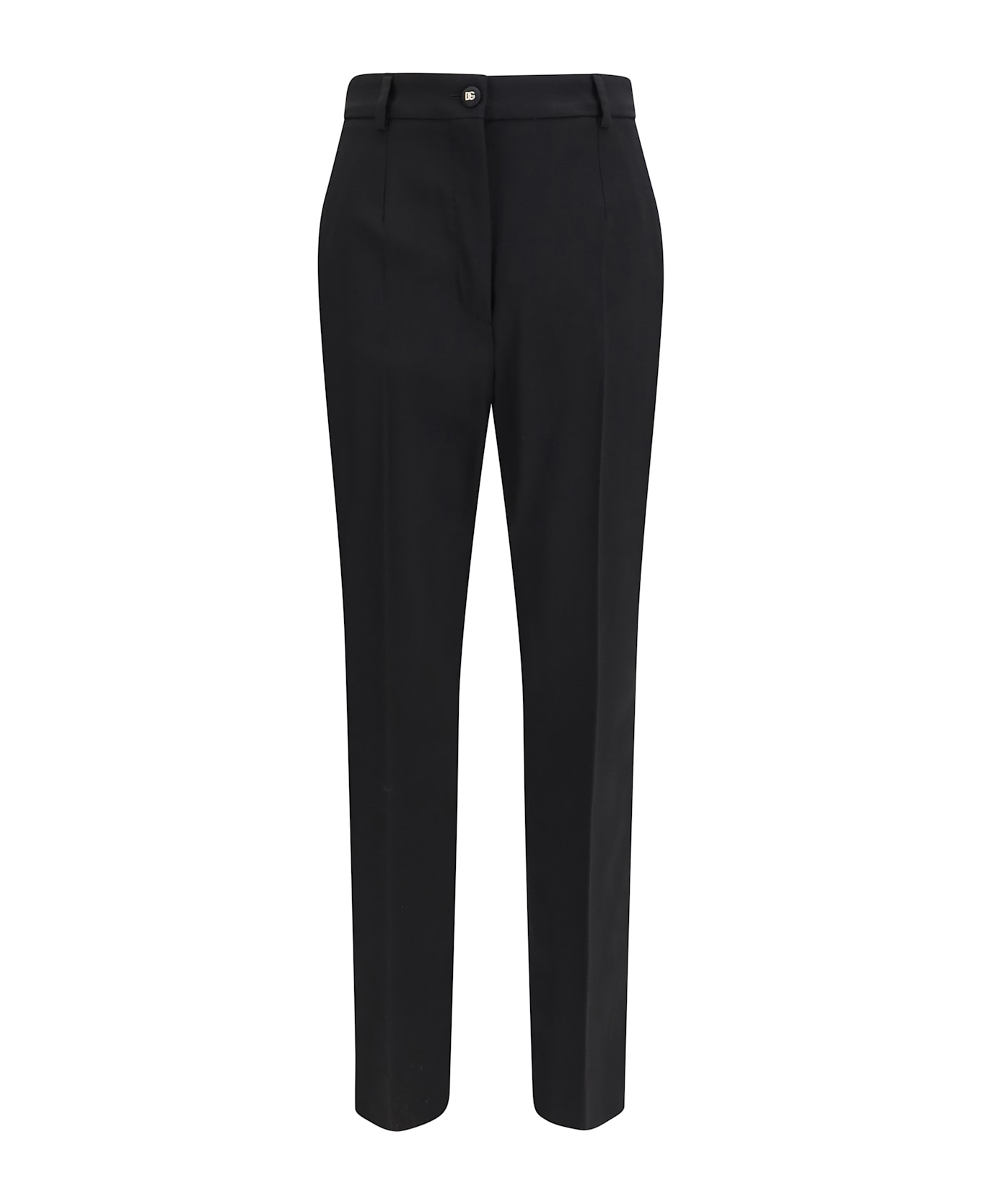 The wool tailored pants dolce&gabbana by combine classic elegance with a modern silhouette, featuring a front crease, welt pockets, and clean lines. the gold monogram on the button, shiny belt loops, and secure zip closure complete this exclusive garment, ideal for refined and contemporary looks.