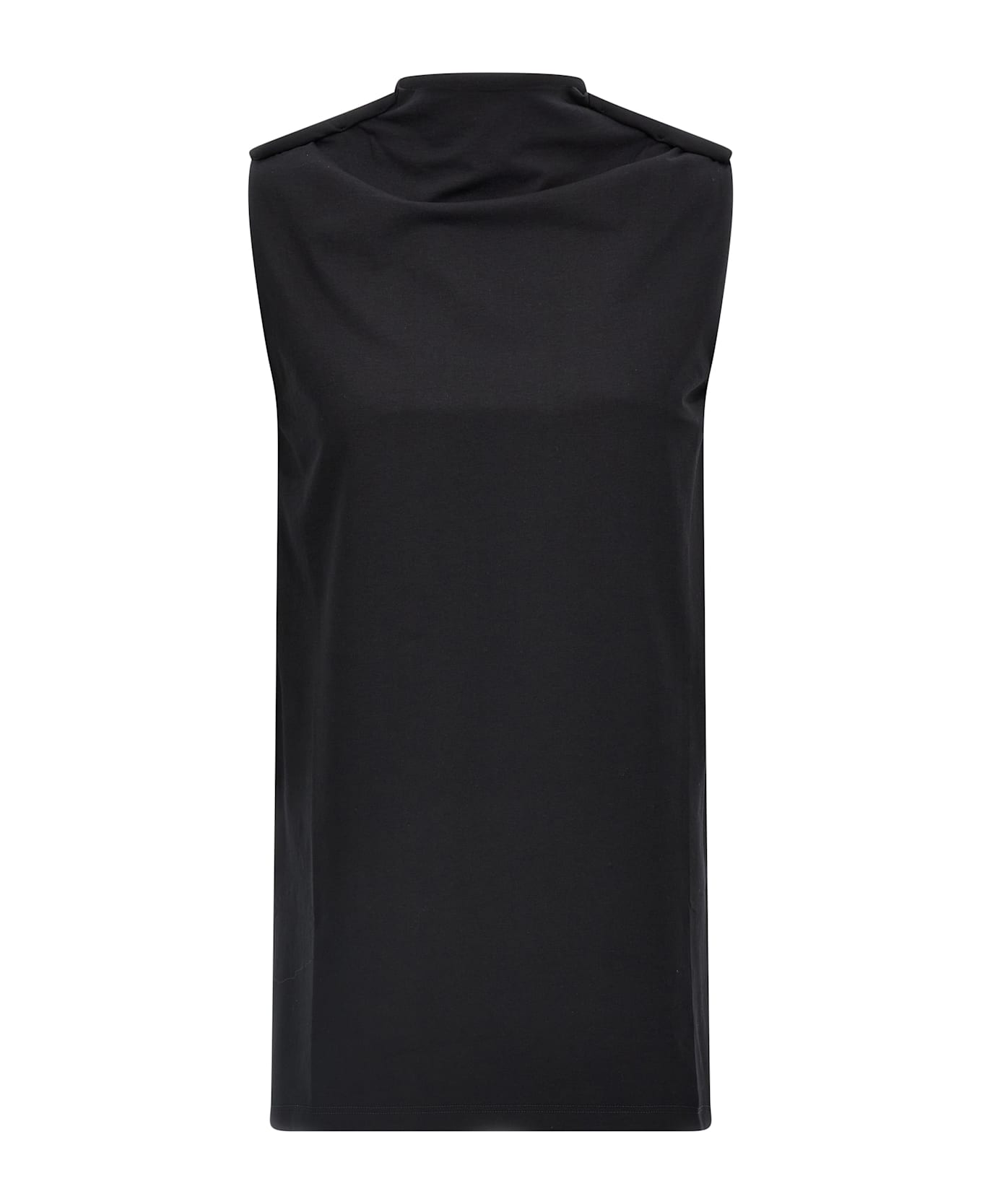 'Glenda' sleeveless cotton jersey mini dress with twisted shoulders, boat neck.