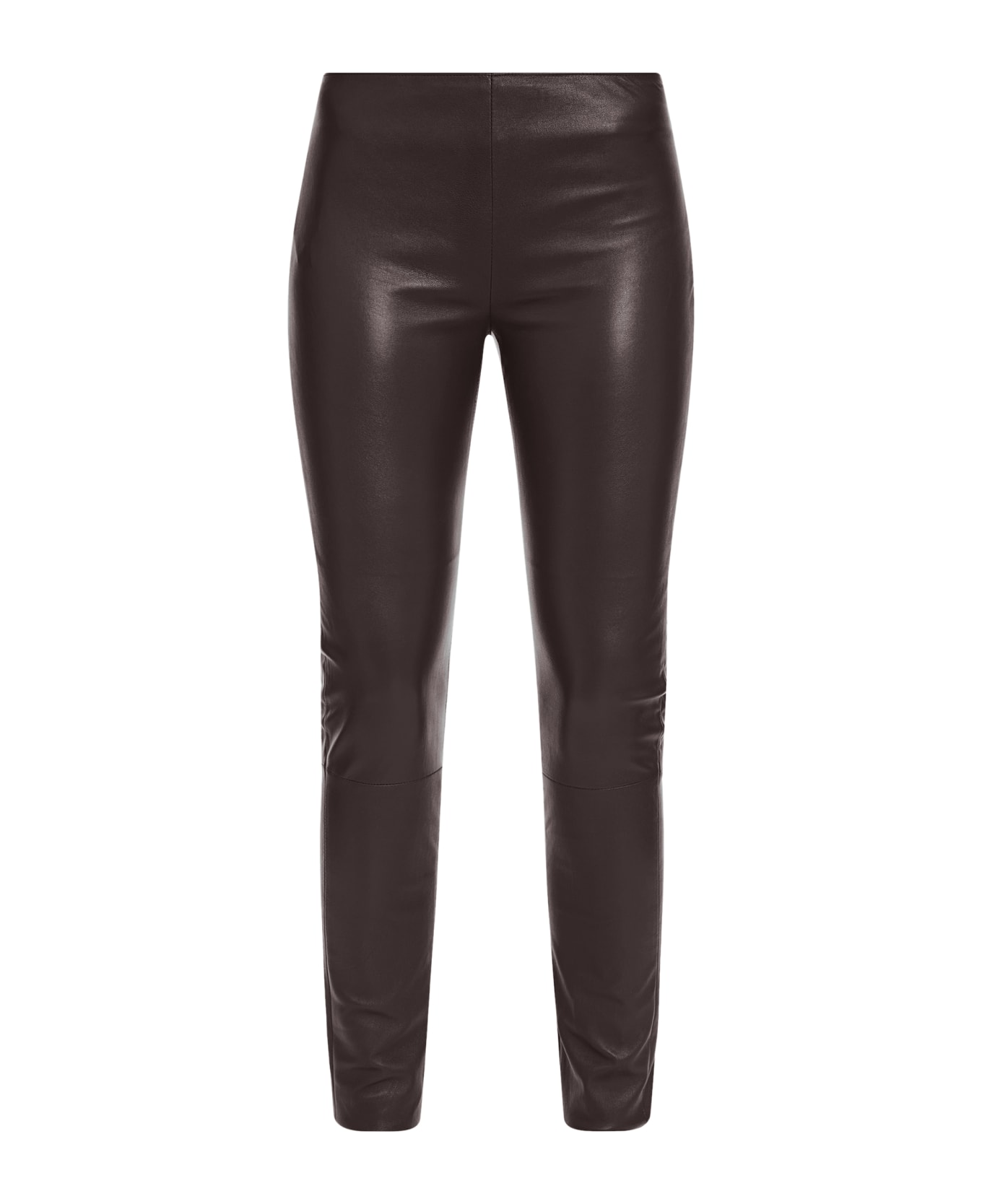 These brown leggings come in stretchy plong? leather. This slim-fit garment flaunts an extremely polished aesthetic with a side zip and raw-cut hems. Composition: 100% Lambskin, Lining, 100% Polyester