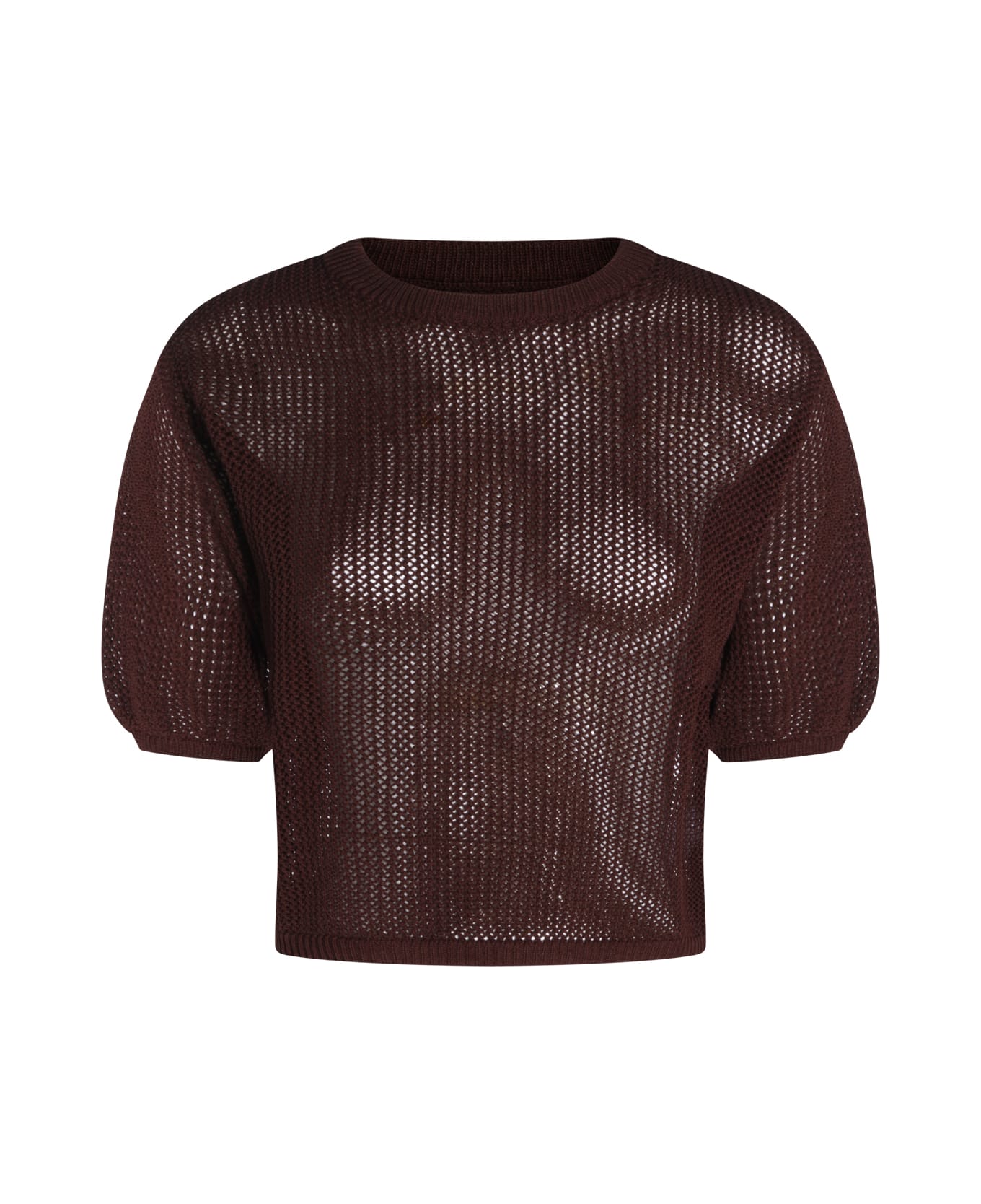Brown cotton knitwear from Antonelli Firenze featuring round collar, elasticated short sleeves and transparent effect.