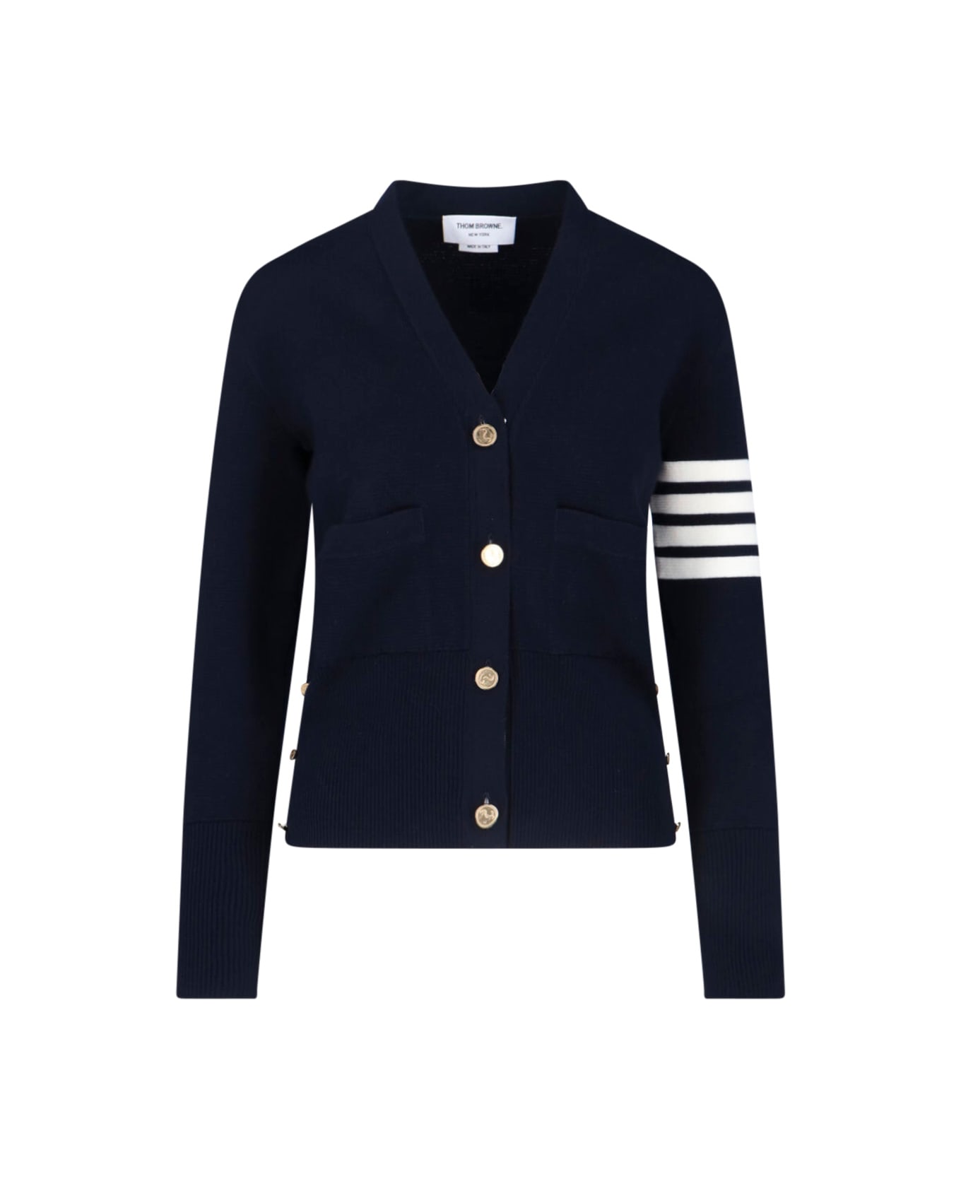 - Cardigan "4 Bar" Thom Browne in blue virgin wool