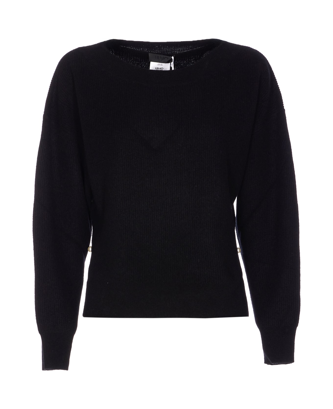 Liu Jo black sweater, crewneck, long sleeves, pearl detail