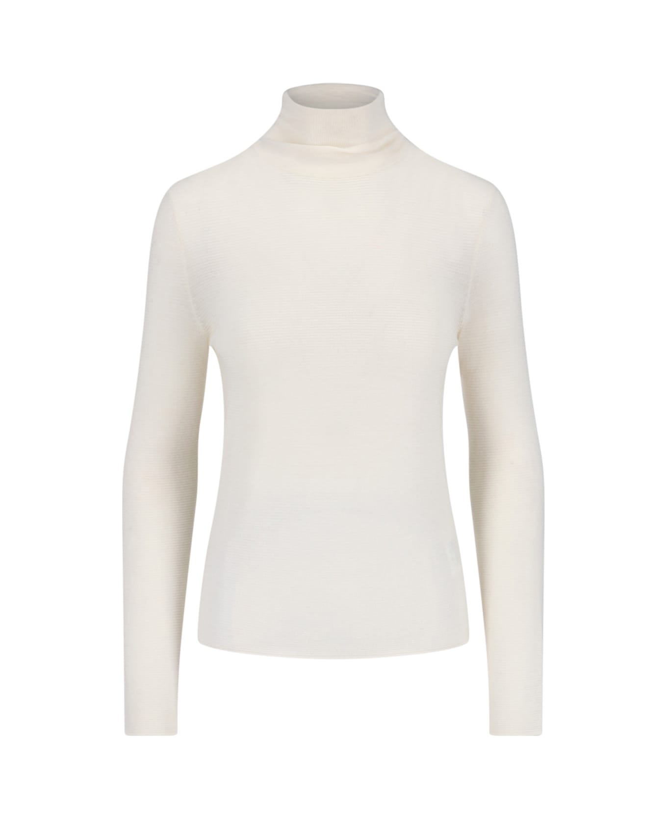 Lisa Yang The Lory white cashmere sweater with high neck, long sleeves, straight hem.