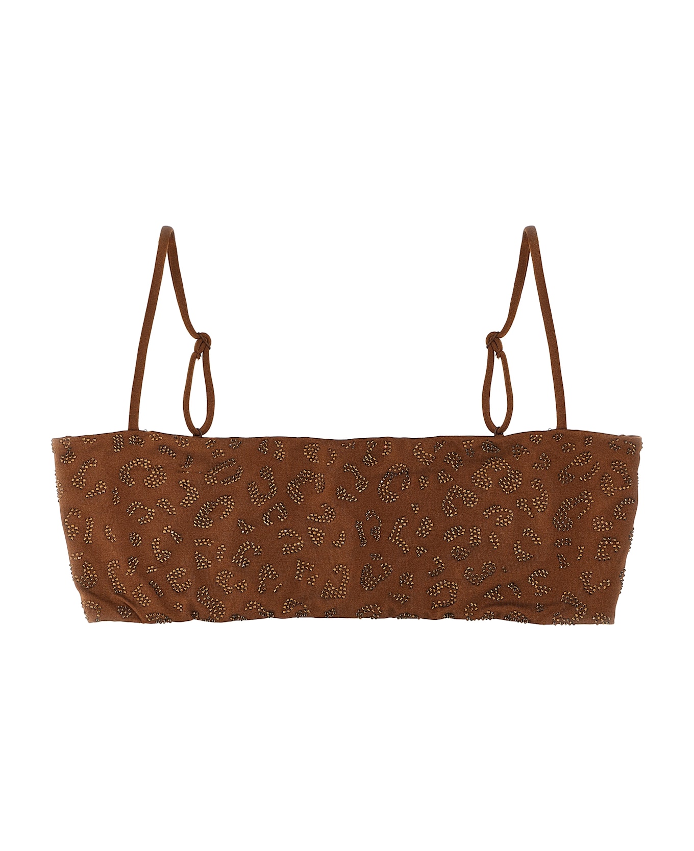 'Athena' bikini top in stretch fabric with rhinestone appliqué, band model with front animal print and thin adjustable straps. Composition: 90% polyester, 10% elastane