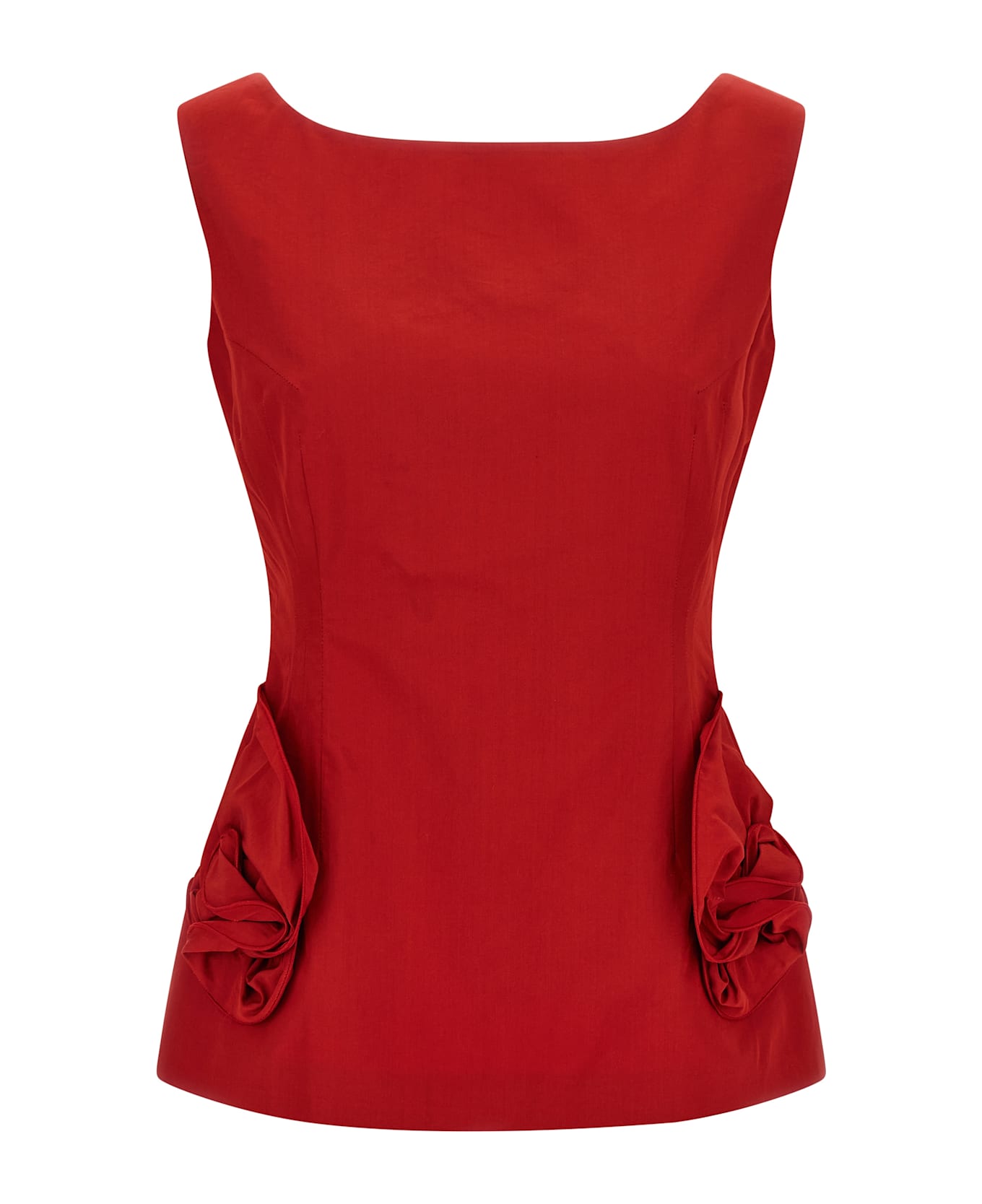 '05' cotton and viscose blend top, hourglass silhouette, pockets with 3D floral decoration, square neckline, pince, back zip closure, silk lining. Composition: 56% cotton 46% viscose