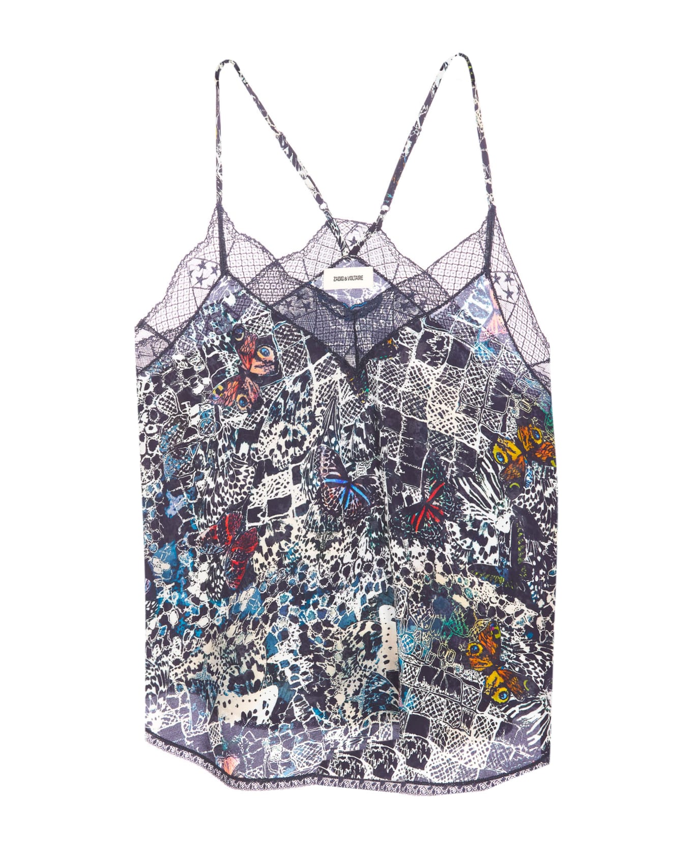 Zadig&Voltaire multicolor Christy soft butterflies top, thin shoulder strap, laces details, printed