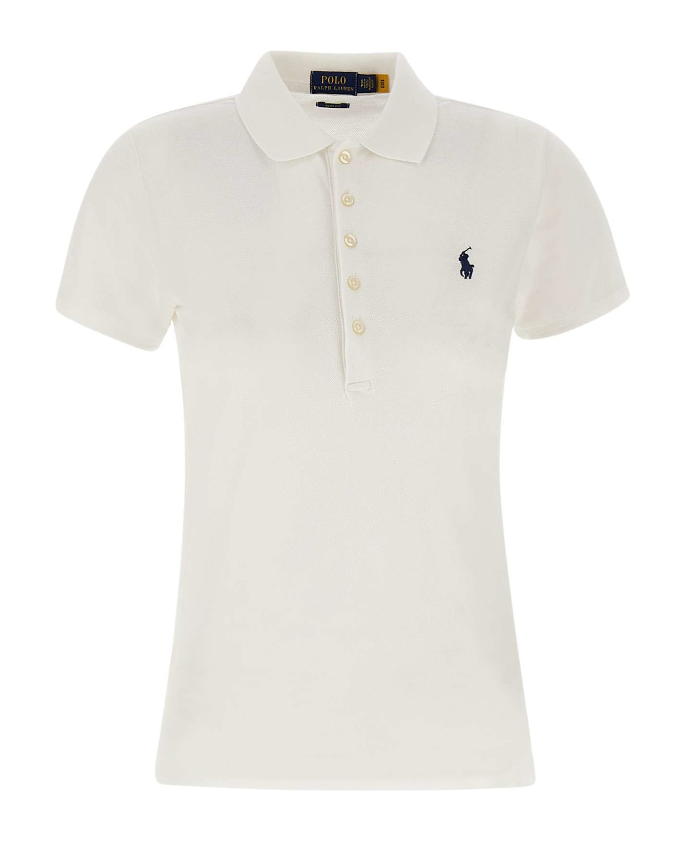 Polo Ralph Lauren "Bsr" women's cotton polo shirt, white colour, classic collar with five white mother-of-pearl effect buttons fastening, short sleeves, slim fit, iconic blue embroidered logo on chest, side slits at hem, ideal for spring and summer season.