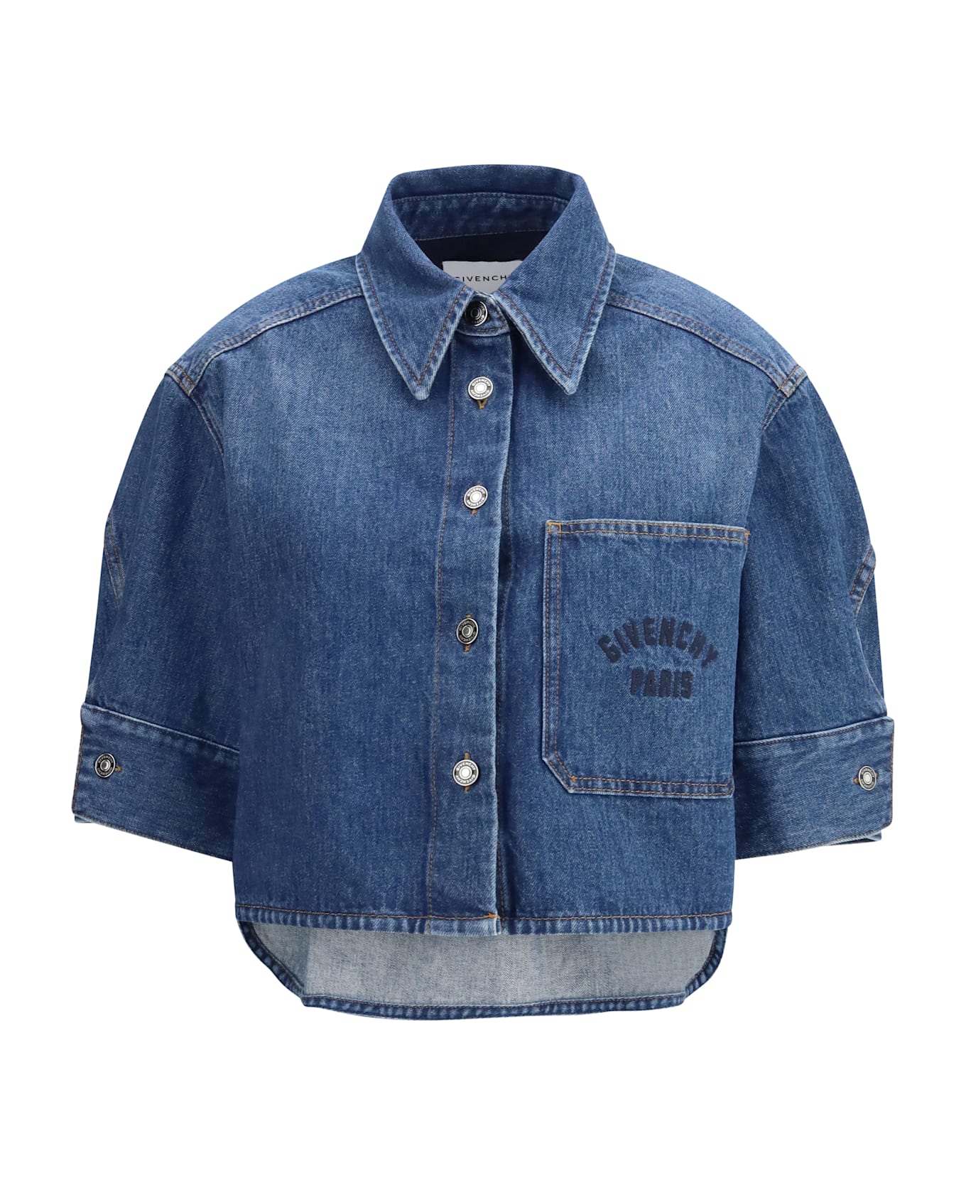 The denim shirt by givenchy redefines workwear through exaggerated volumes and a couture-inspired construction. the classic collar and givenchy-engraved button fastening are balanced by couture seams designed to enhance the enveloping shape. the embroidered givenchy paris patch on the chest and the single chest pocket complete the piece with a bold and iconic signature. Composition: 100% % Cotton