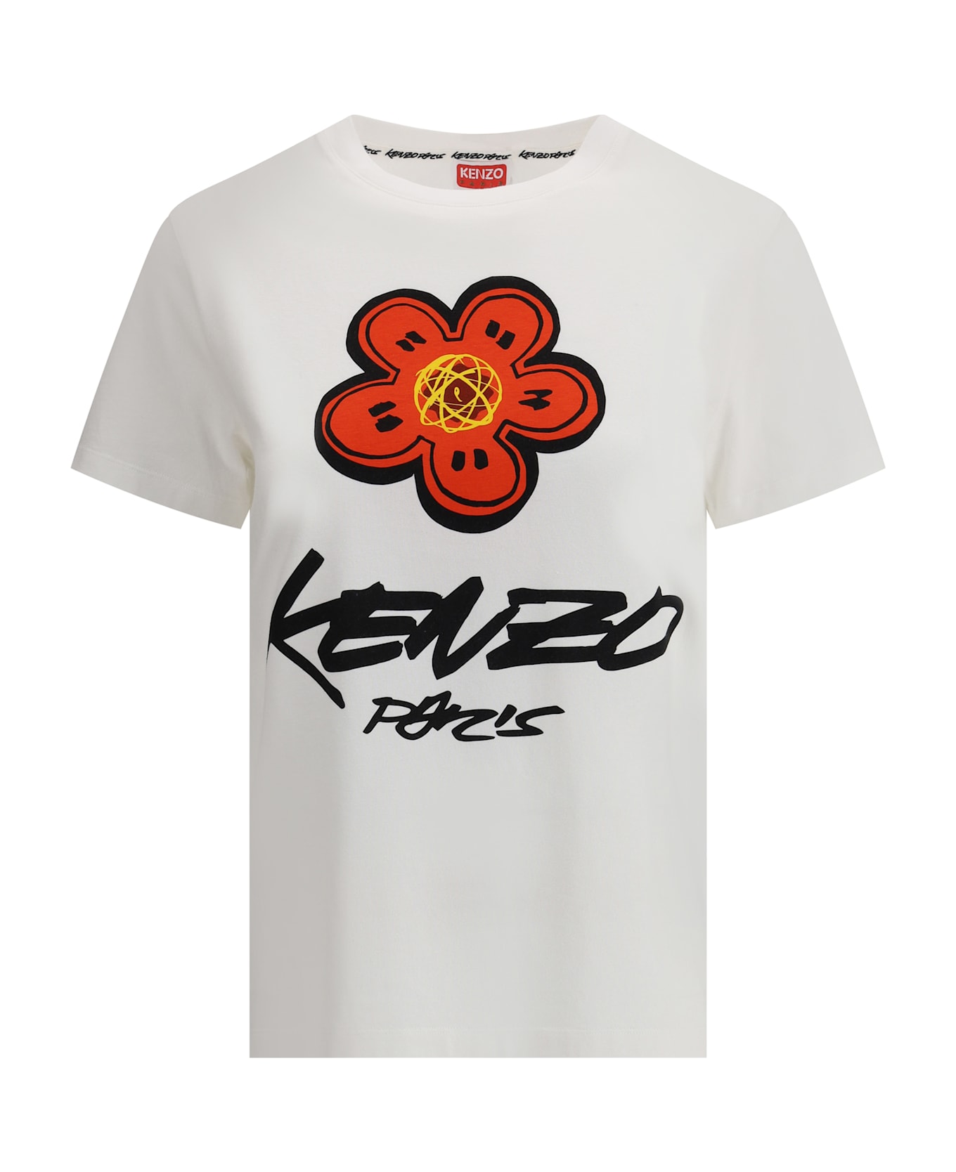 Kenzo's futura t-shirt is an iconic garment that combines simplicity and visual identity. made of soft cotton, it features a ribbed crew neck and an essential fit. on the front, the iconic kenzo signature and the house's iconic flower stand out, printed in contrast for a bold and recognizable graphic effect.